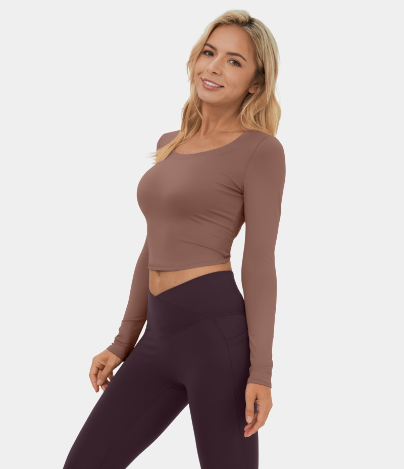 :: Halara Cut Out Lace Up Cropped Barre Ballet Dance Sports Women's Tops Russet | HGNFIMX-96