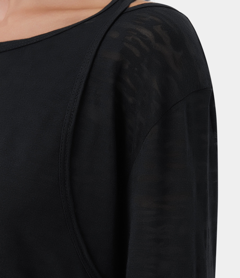 :: Halara Cut Out Thumb Hole Curved Hem Yoga Sports Women's Tops Black | HFOYZCV-79