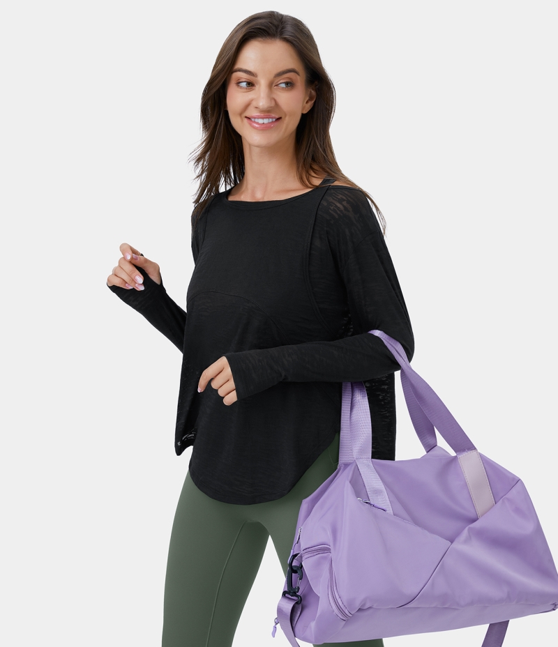 Halara Cut Out Thumb Hole Curved Hem Yoga Sports Women's Tops Black | HFOYZCV-79