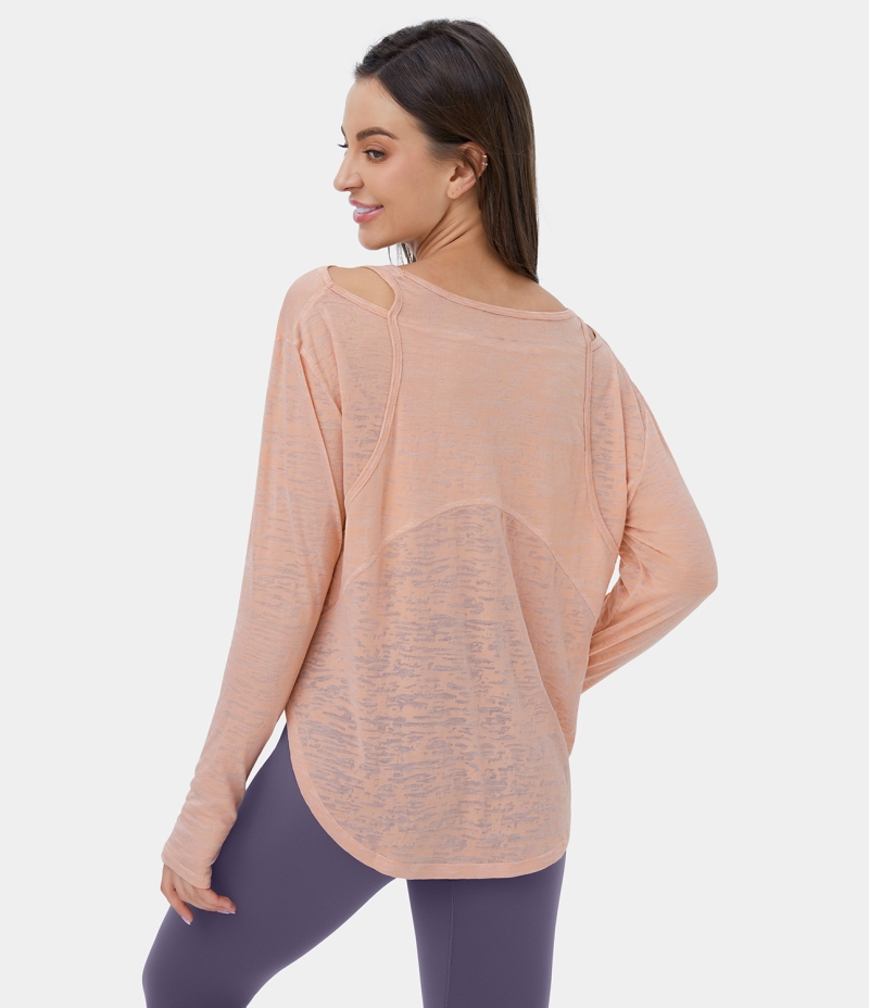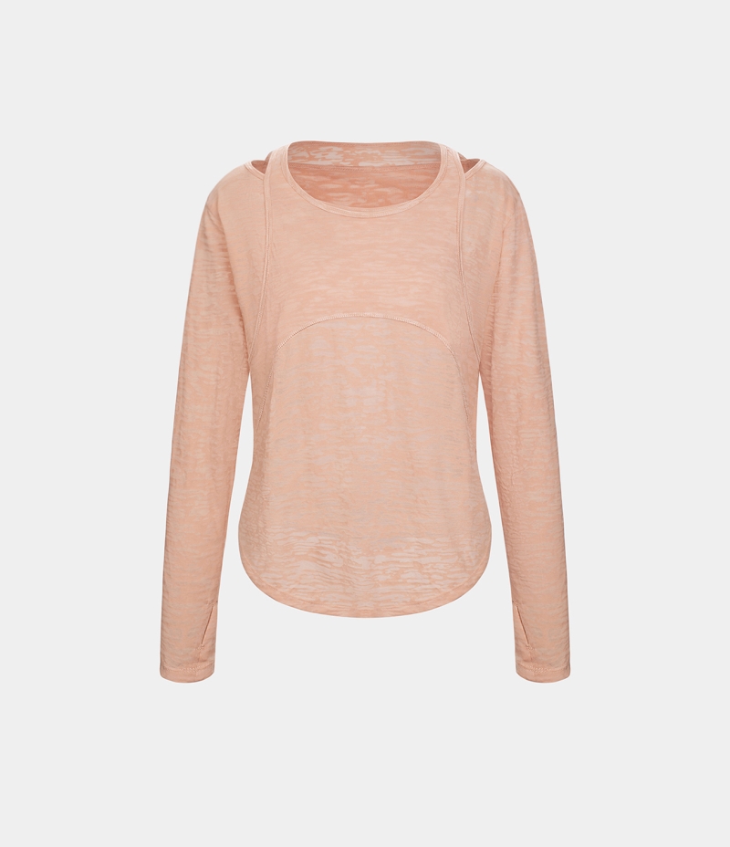 :: Halara Cut Out Thumb Hole Curved Hem Yoga Sports Women's Tops Rose Cloud | QMZUYOK-84