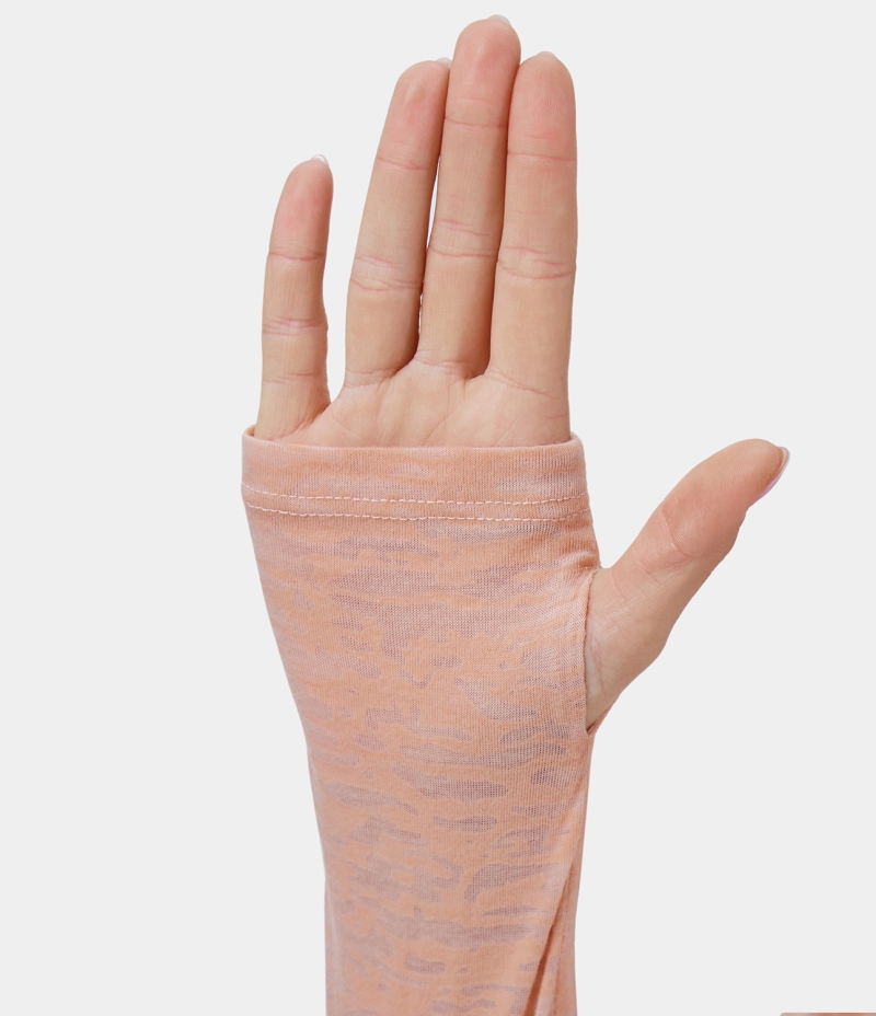 :: Halara Cut Out Thumb Hole Curved Hem Yoga Sports Women's Tops Rose Cloud | SFGUJLN-52