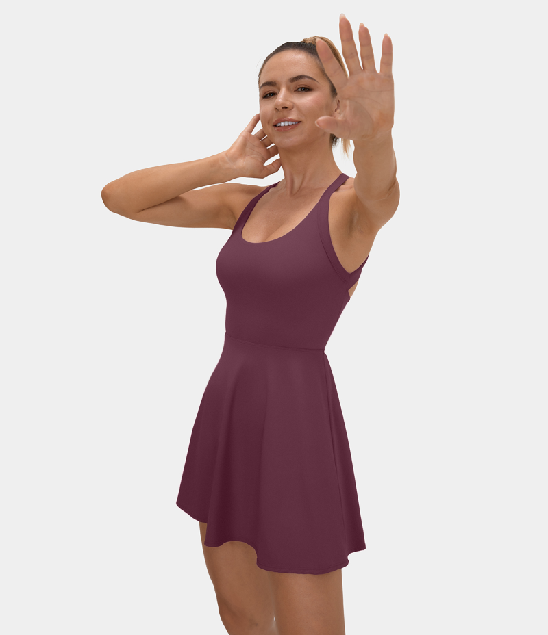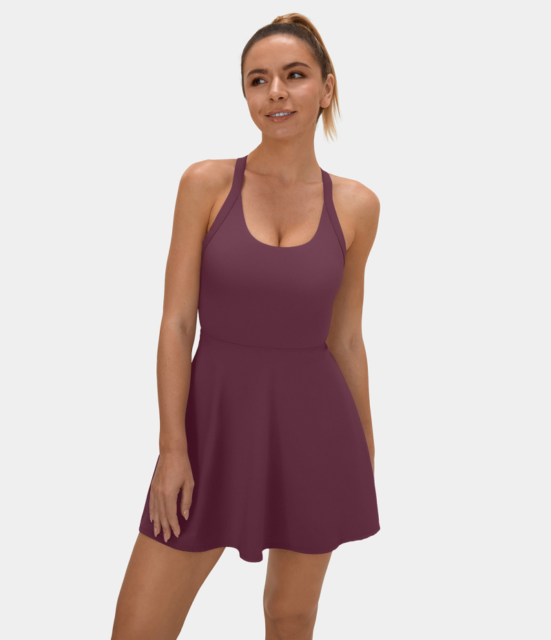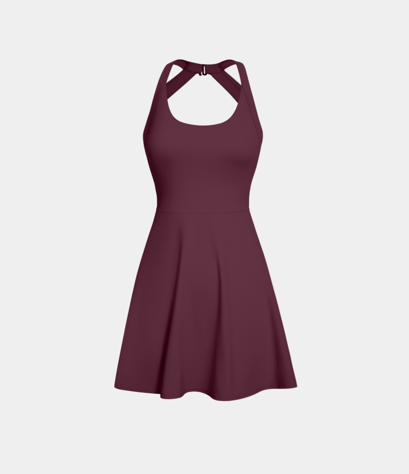 :: Halara Cut Out Twisted Side Pocket 2-in-1 Barre Ballet Dance Women's Dress New Maroon | 178365-PYD