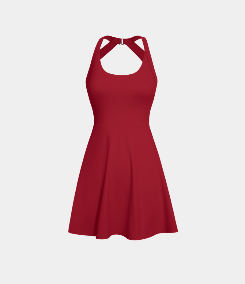 :: Halara Cut Out Twisted Side Pocket 2-in-1 Barre Ballet Dance Women's Dress Rococco Red | 851263-HJU