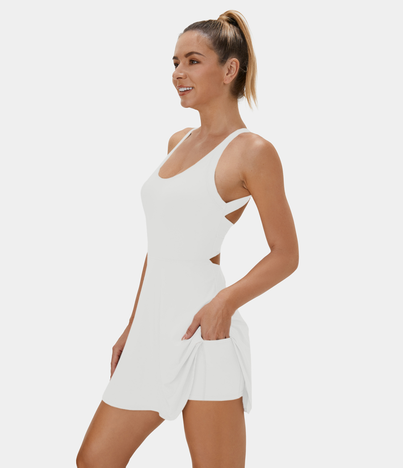 :: Halara Cut Out Twisted Side Pocket 2-in-1 Barre Ballet Dance Women's Dress White | 962035-AYE
