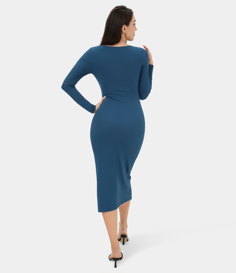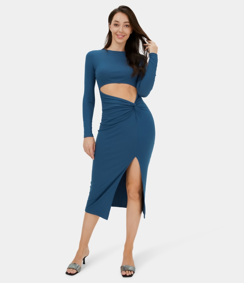 :: Halara Cut out Twisted Split Bodycon Midi Casual Women's Dress Deep Dive | 689317-HKO