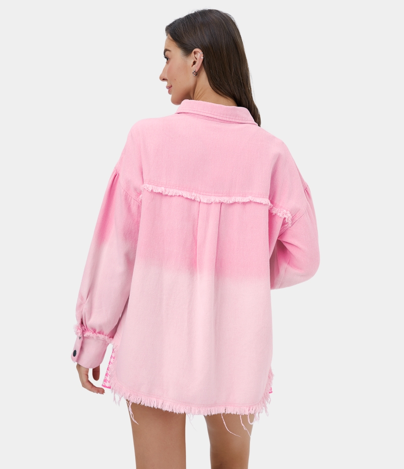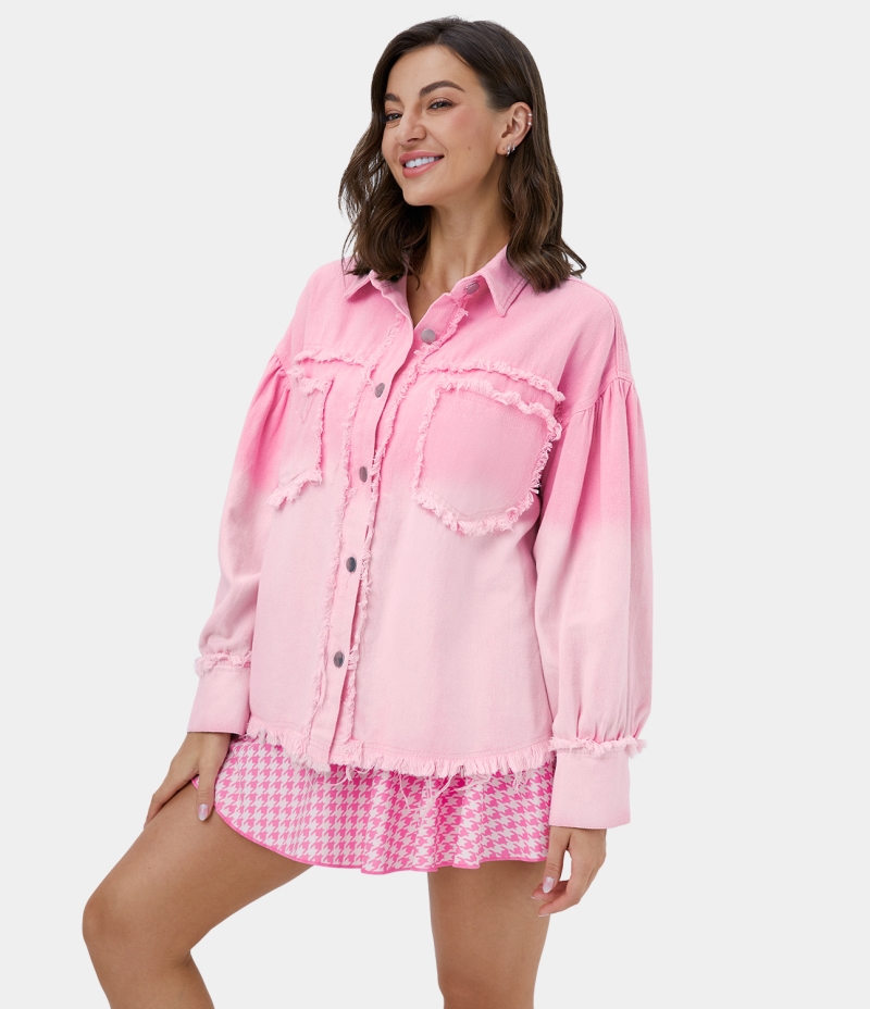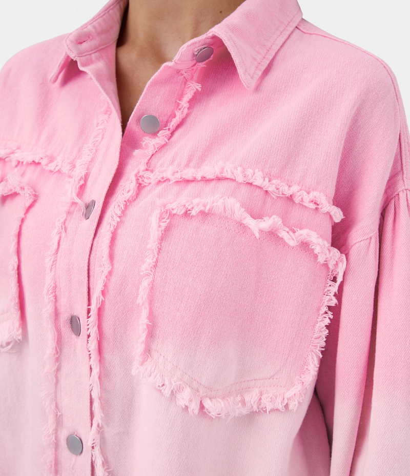 Halara Deep Dye Collared Button Pocket Fringe Casual Jacket Women's Tops Pink-a-boo | UOHQWYG-07