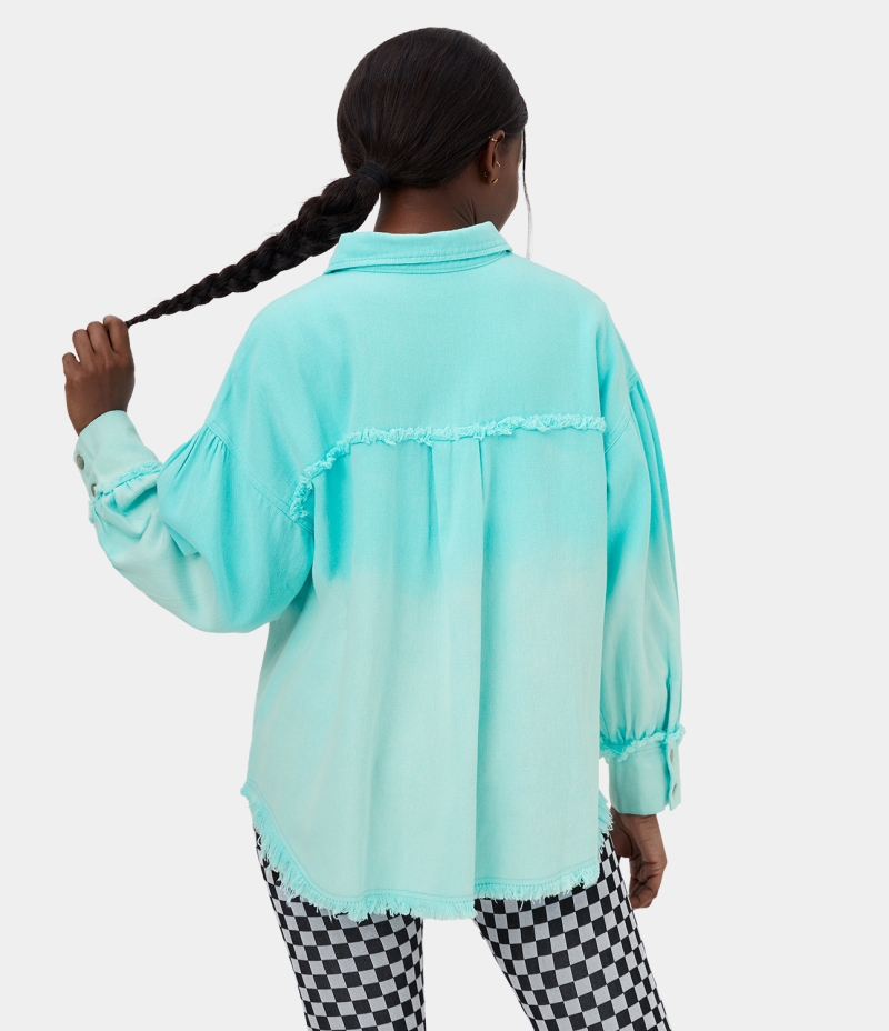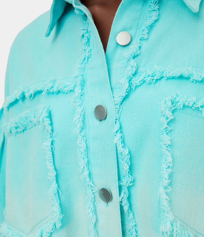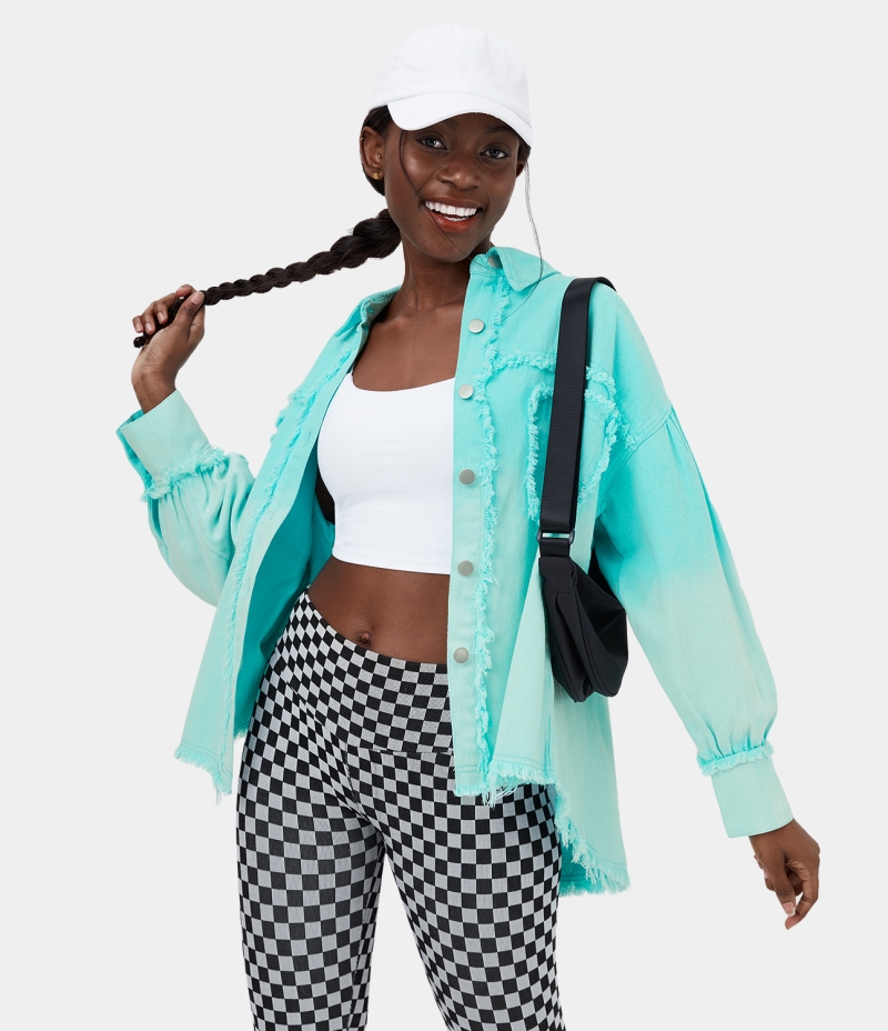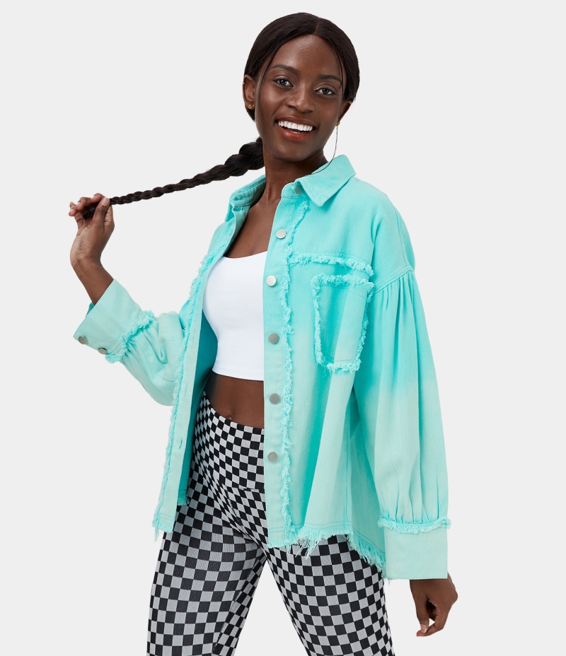 Halara Deep Dye Collared Button Pocket Fringe Casual Jacket Women's Tops Soothing Sea | JPRQGYT-64