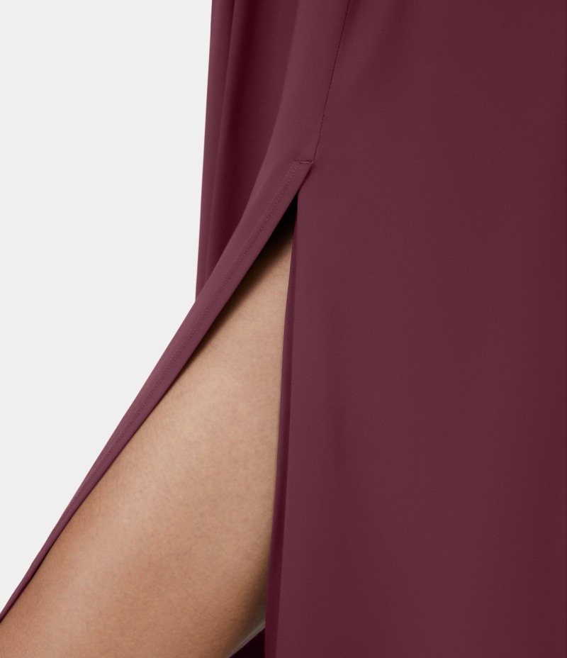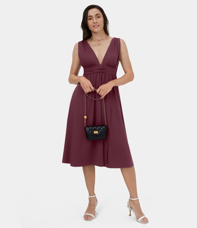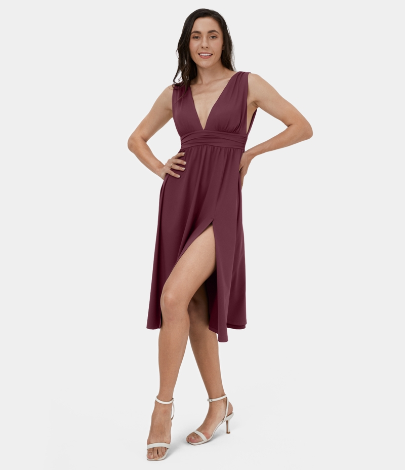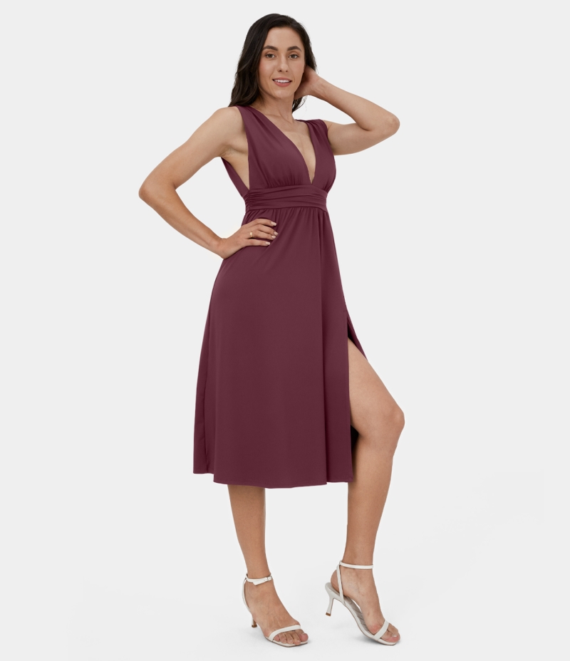 :: Halara Deep V Neck Split Sleeveless Midi Casual Women's Dress Zinfandel | 106935-GMC