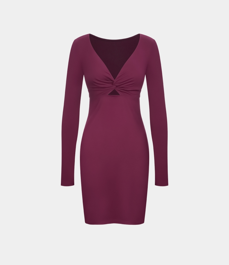 :: Halara Deep V Neck Twisted Cut Out Bodycon Mini Casual Women's Dress New Maroon | 830179-AUE