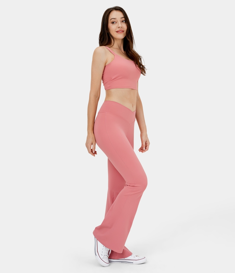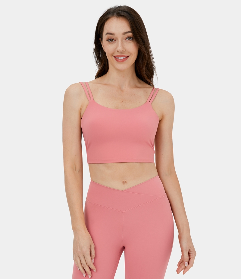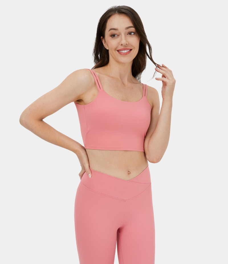 :: Halara Double Straps Backless Twisted Yoga Cropped Tank Women's Tops Pink Icing | NKEIWSF-71
