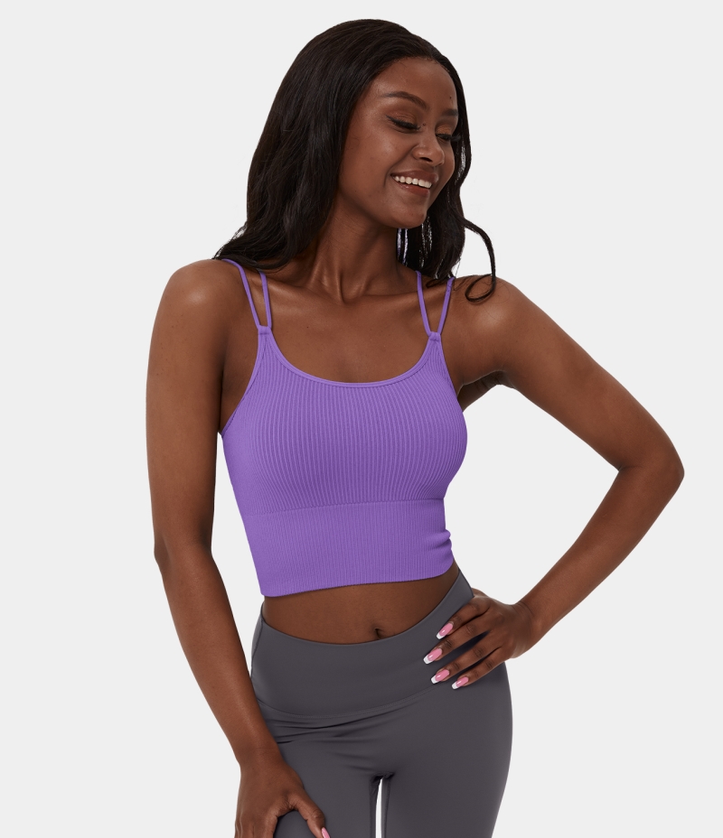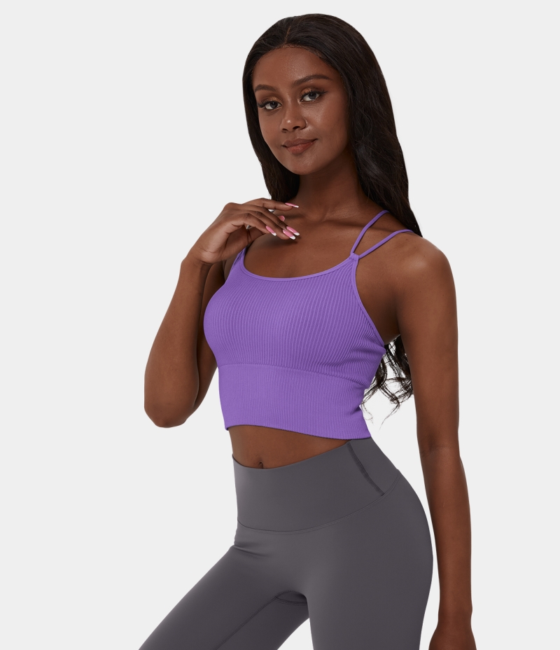 :: Halara Double Straps V Back Cropped Yoga Tank Women's Tops Chive Blossom | VDAZHIP-10