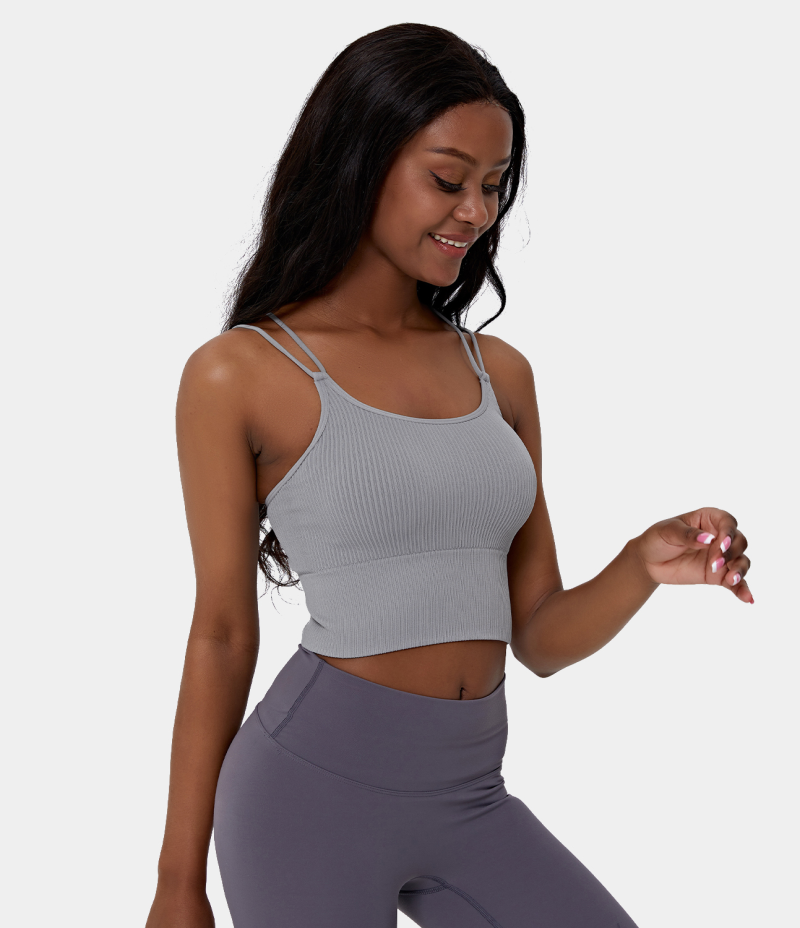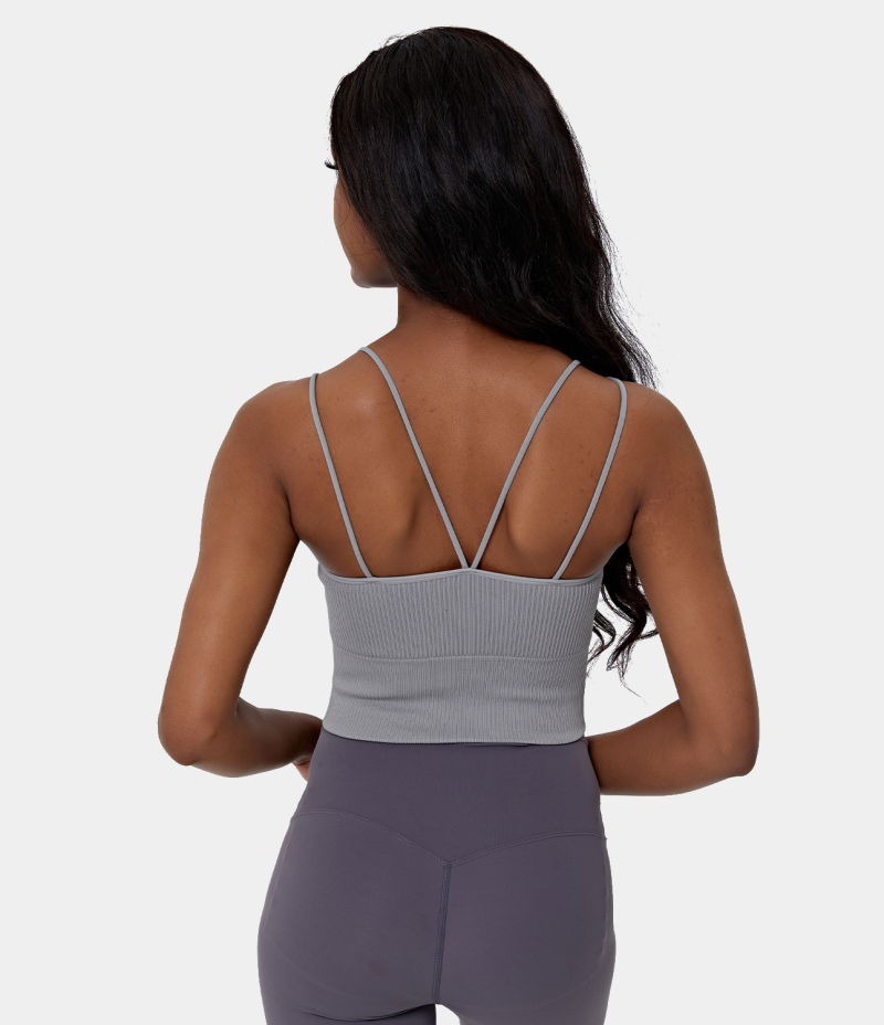 :: Halara Double Straps V Back Cropped Yoga Tank Women's Tops Grey | SGWRYDK-02