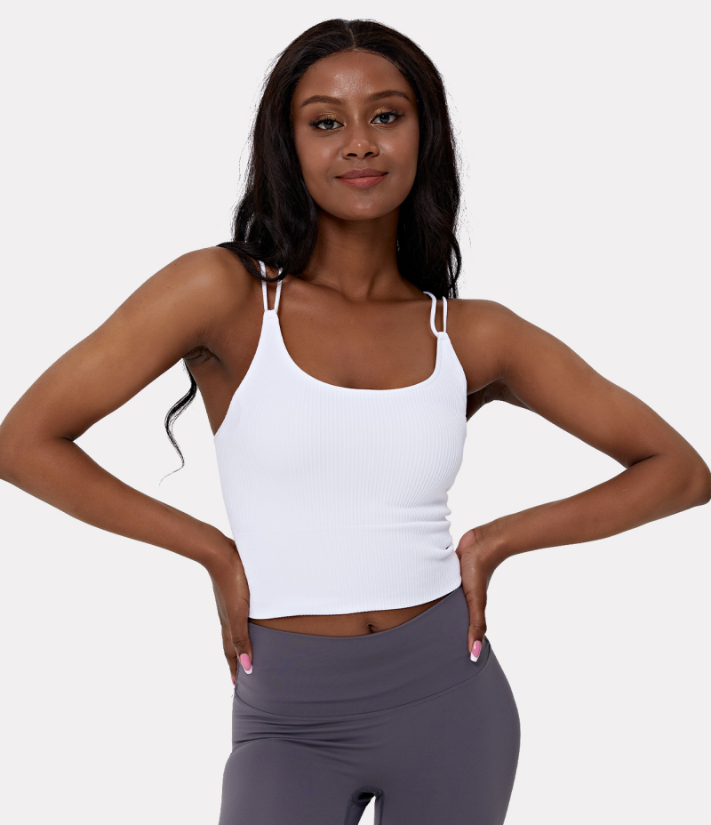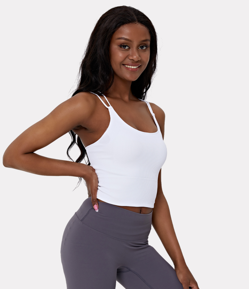 :: Halara Double Straps V Back Cropped Yoga Tank Women's Tops White | JLAVMDS-04