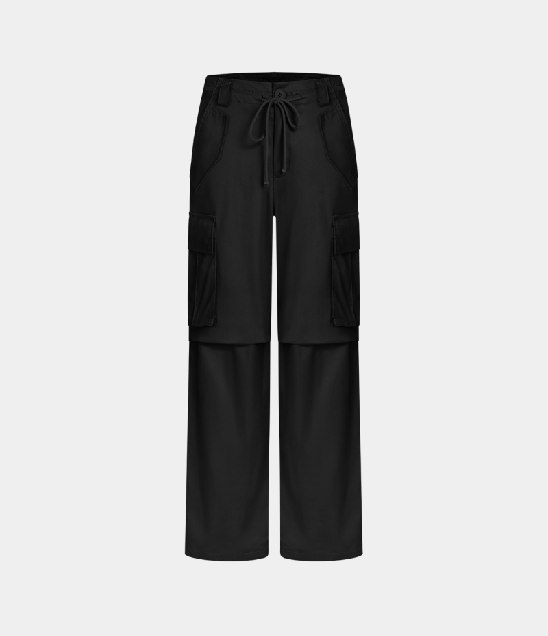 :: Halara Drawstring Button Zip Multi Pockets Wide Leg Casual Cargo Women's Pants Black | 586793-XZH