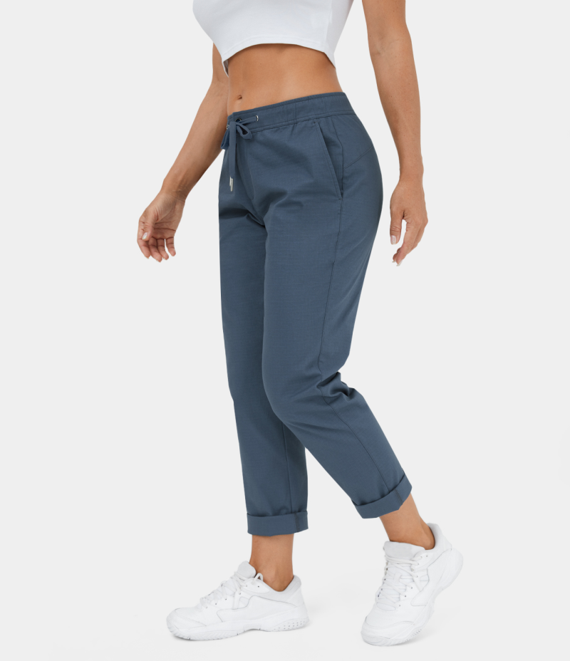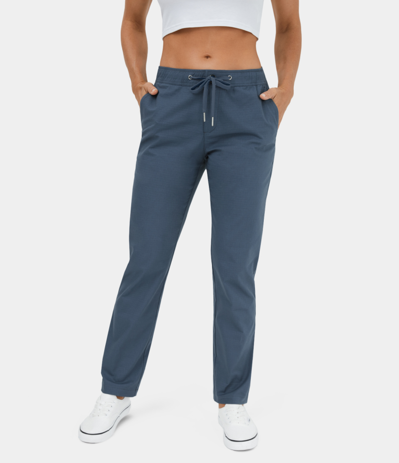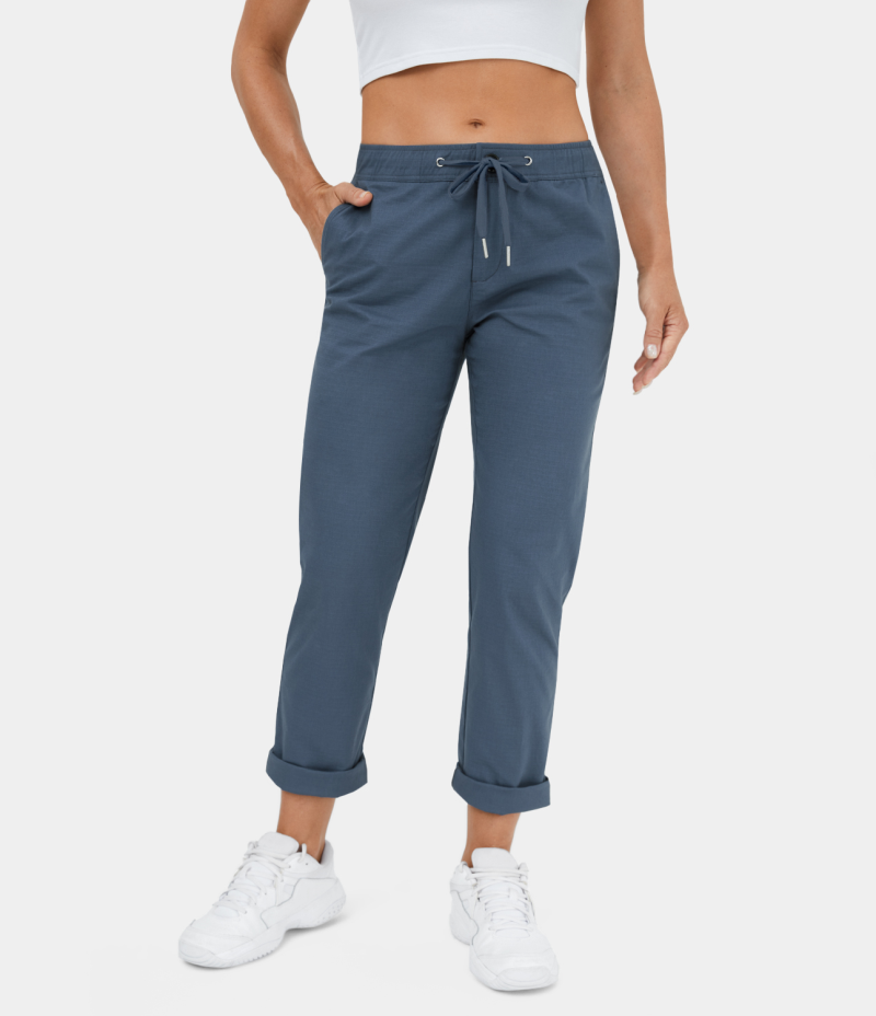 :: Halara Drawstring Button Zip Side Pocket Casual Women's Pants Vintage Indigo | 286305-DUO