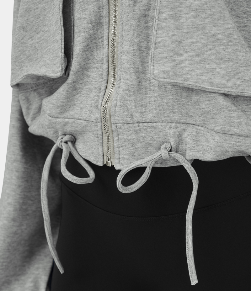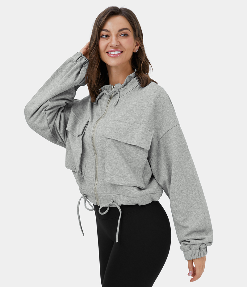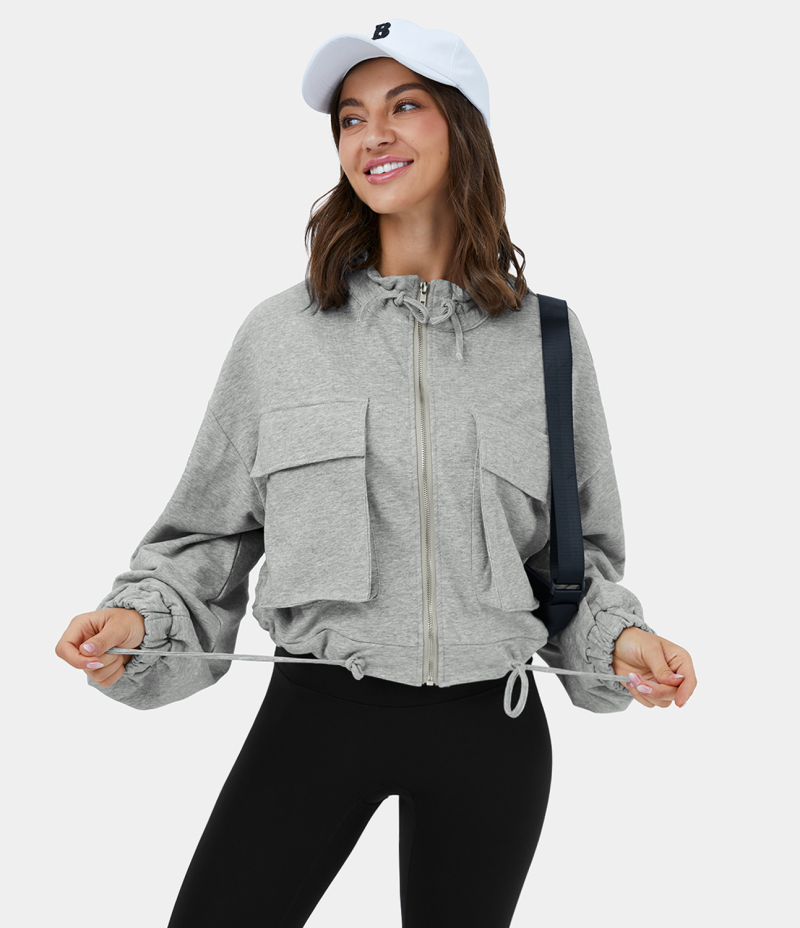 :: Halara Drawstring Zipper Side Flap Pocket Dropped Shoulder Casual Jacket Women's Tops Metal | DIYVWNK-43
