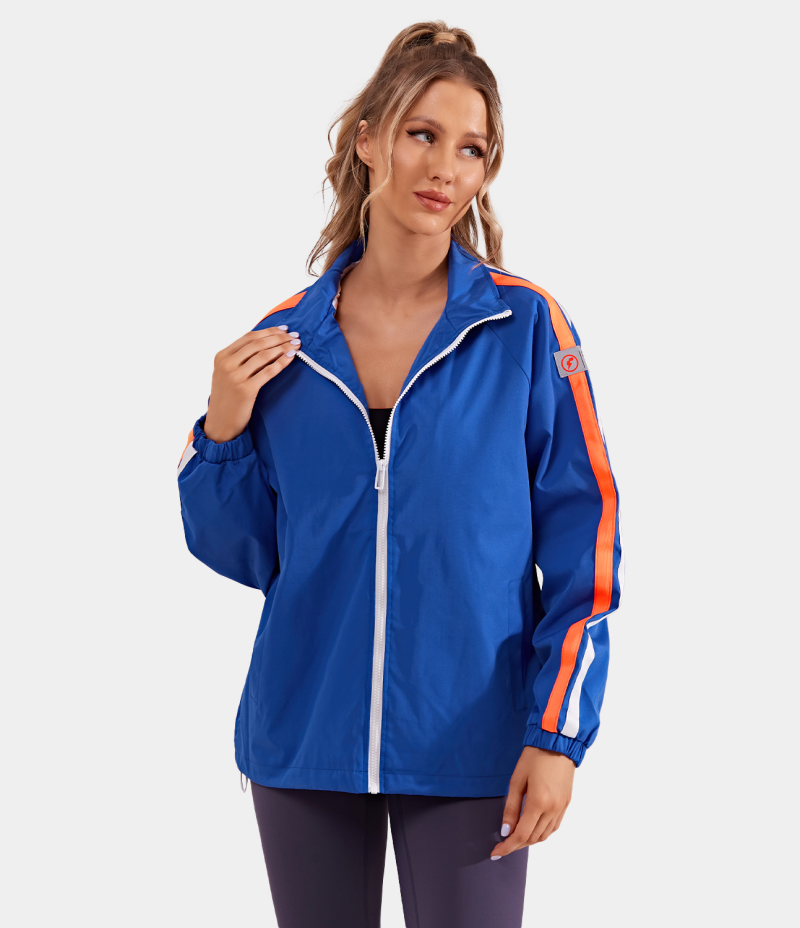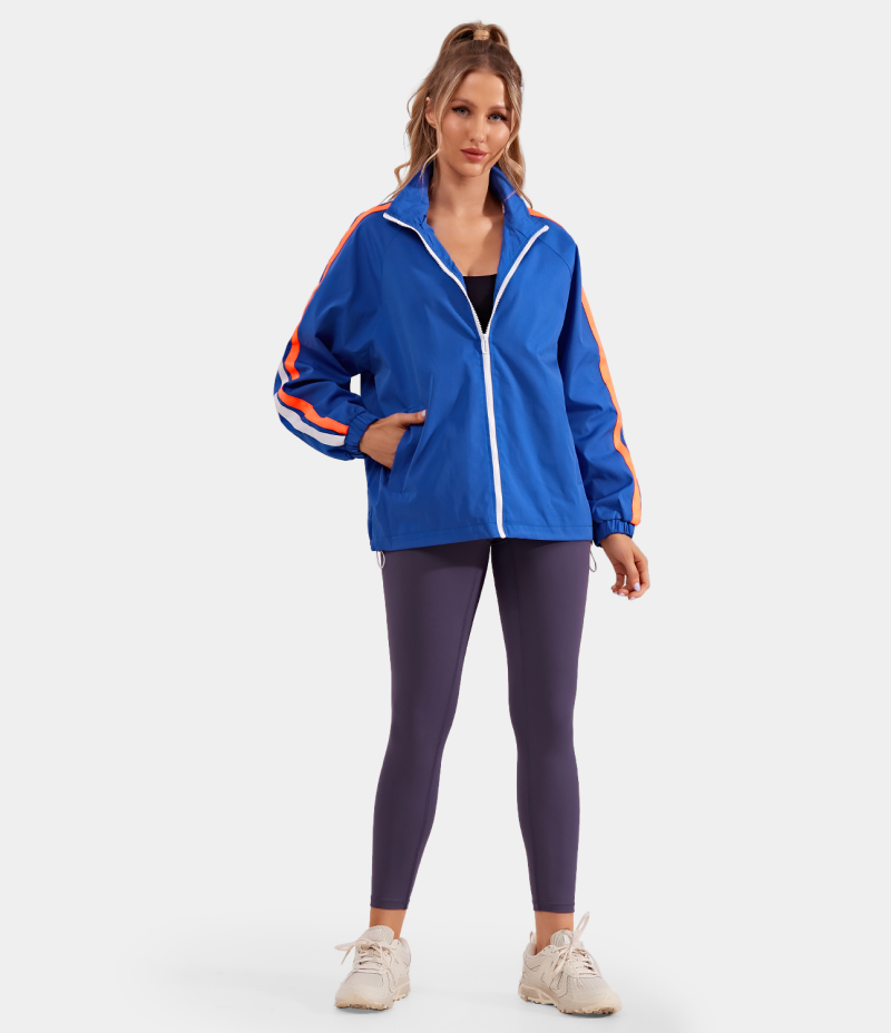 :: Halara Drop Shoulder Side Pocket Zipper Jacket Women's Tops Blue | NAFHROI-65