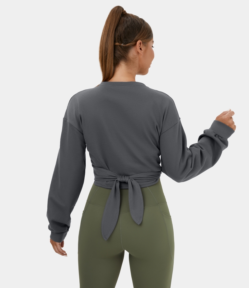 :: Halara Dropped Shoulder Lace Up Cropped Casual Sports Sweatshirt Women's Tops Lava Smoke | WRYCVSA-87