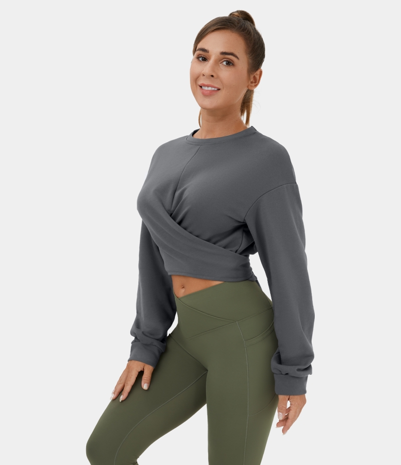 Halara Dropped Shoulder Lace Up Cropped Casual Sports Sweatshirt Women's Tops Lava Smoke | WRYCVSA-87