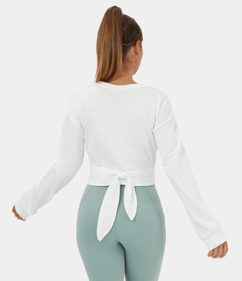 Halara Dropped Shoulder Lace Up Cropped Casual Sports Sweatshirt Women's Tops White | IZRDYKM-04