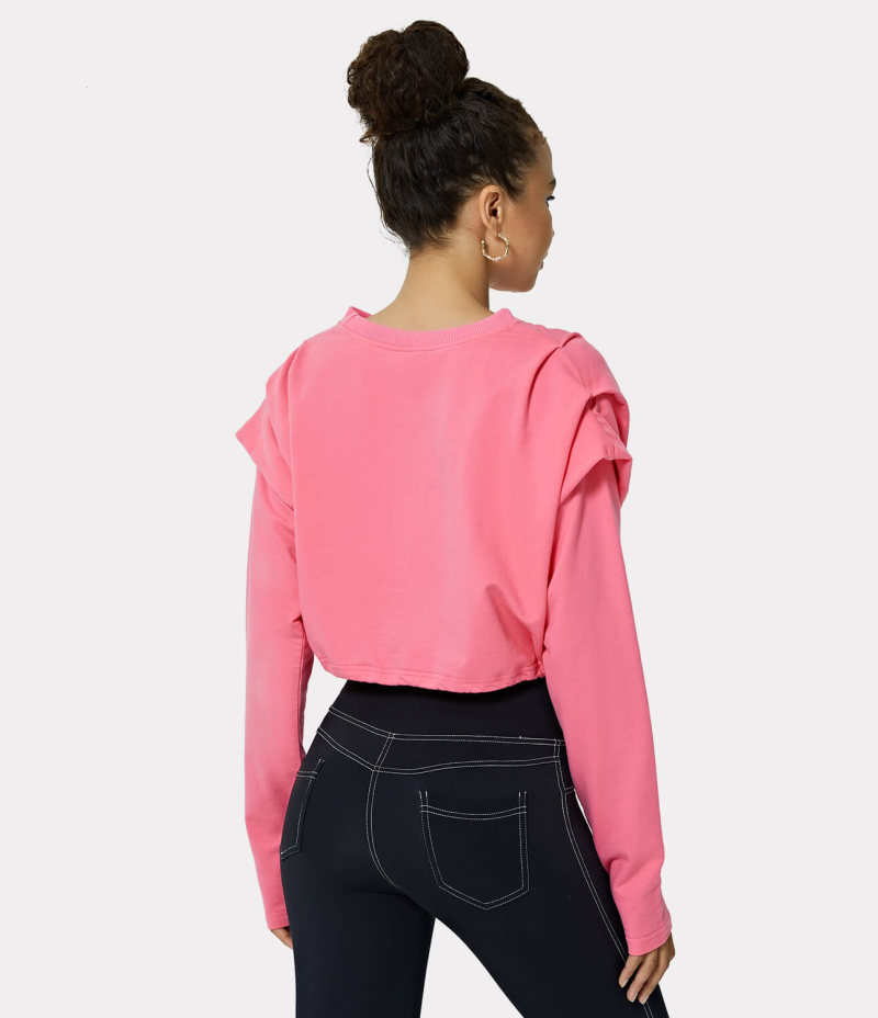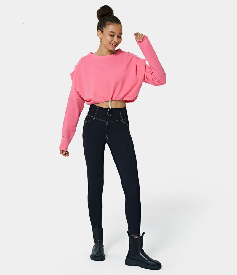 :: Halara Dropped Shoulder Layered Sleeve Drawstring Ruched Plain Sweatshirt Women's Tops Pink | CPQLDOV-37