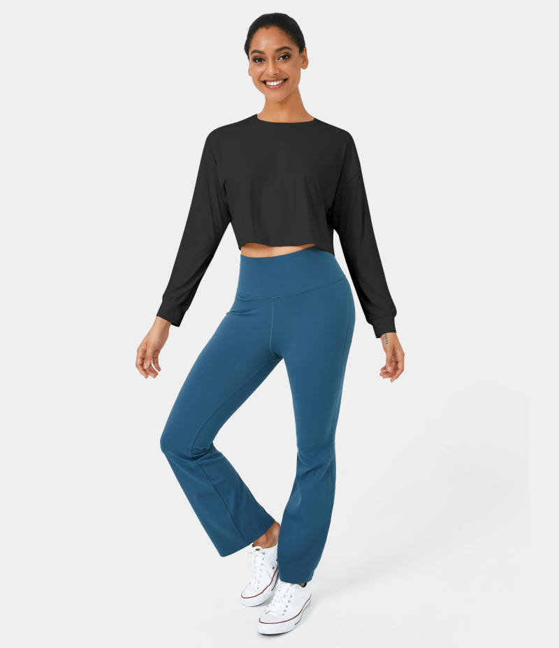 :: Halara Dropped Shoulder Long Sleeve Cropped Sports Women's Tops Black | DCUBWZQ-03