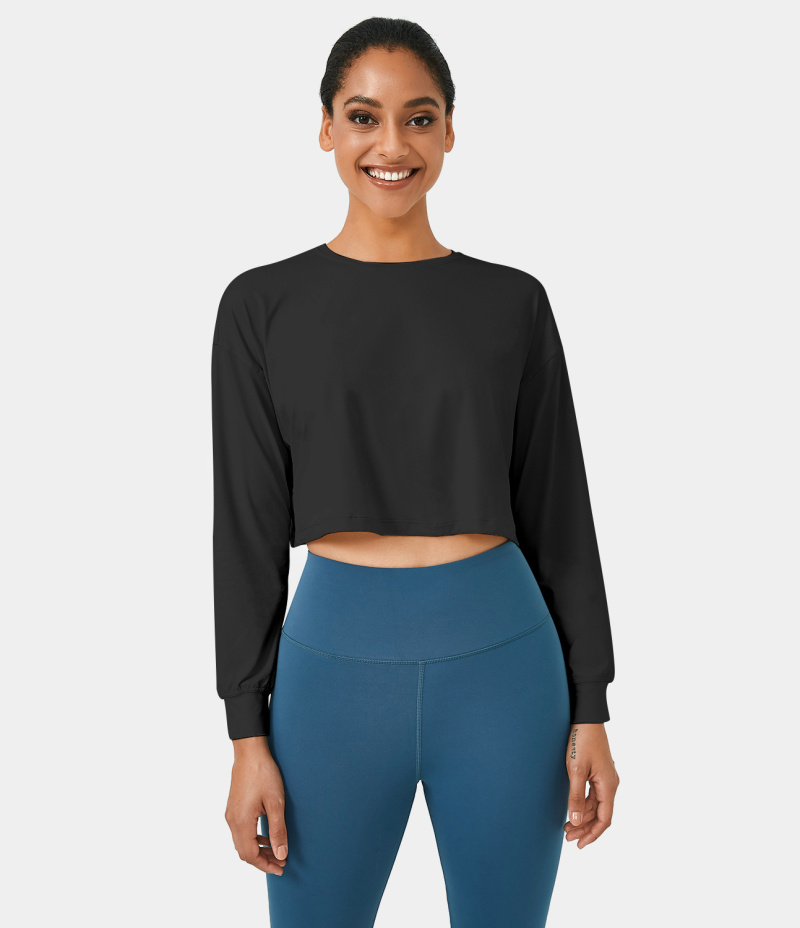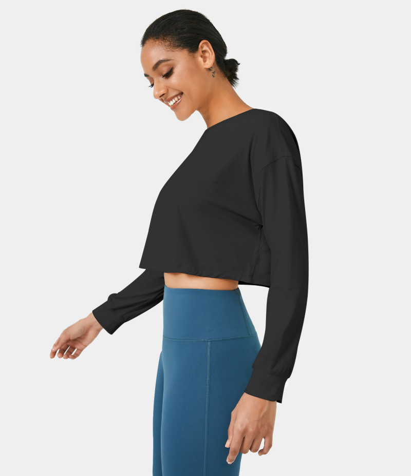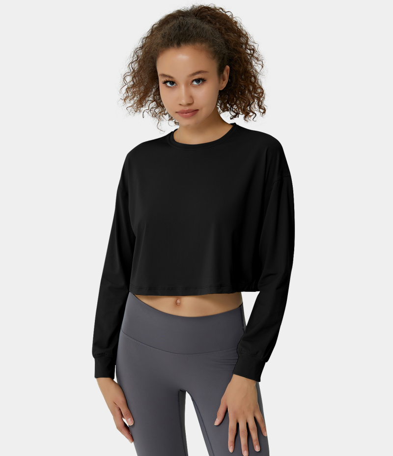Halara Dropped Shoulder Long Sleeve Cropped Sports Women's Tops Black | WRXUYIO-18