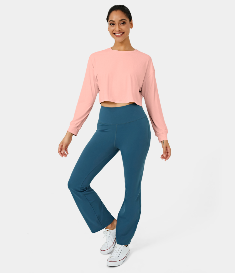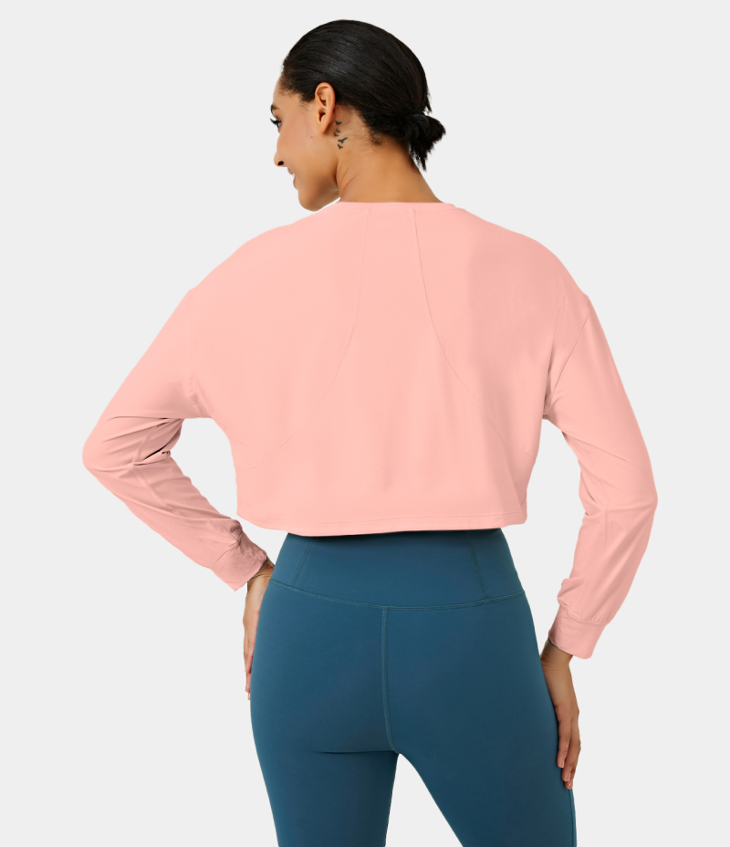 :: Halara Dropped Shoulder Long Sleeve Cropped Sports Women's Tops Pale Rosette | YJNLXTR-12