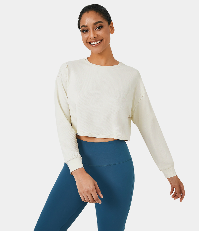 :: Halara Dropped Shoulder Long Sleeve Cropped Sports Women's Tops Snow White | KLHPDJO-20