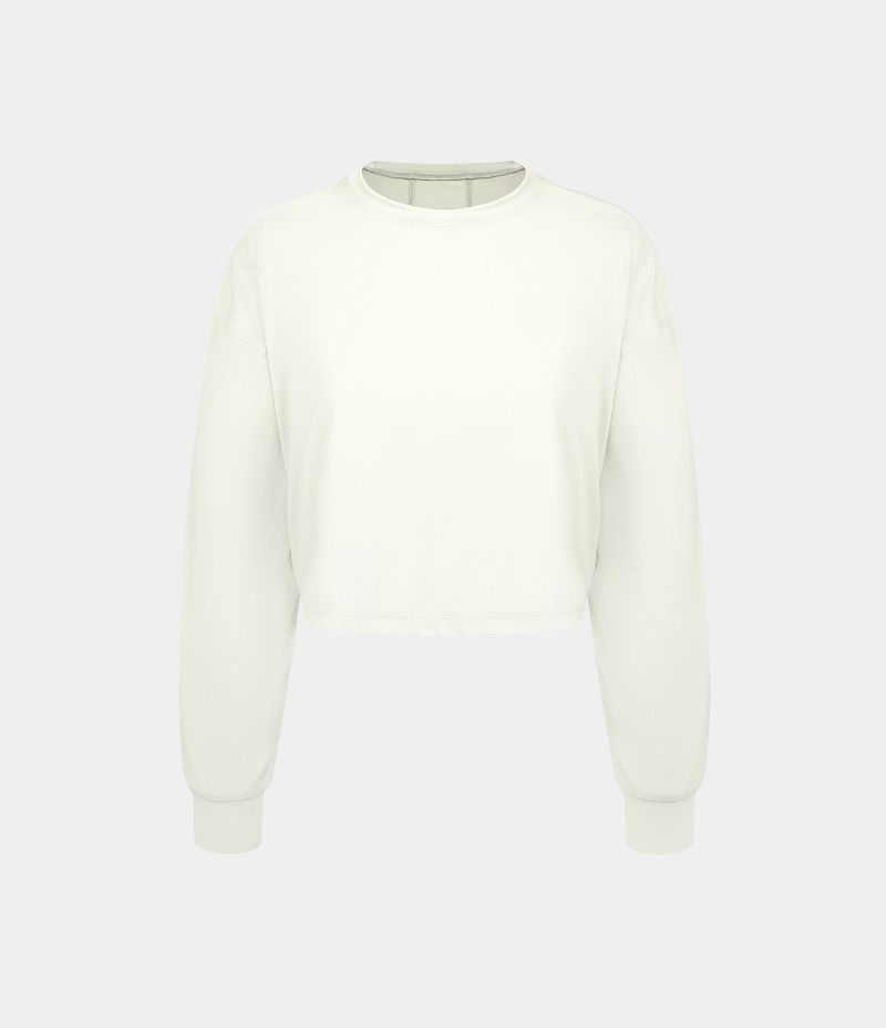 :: Halara Dropped Shoulder Long Sleeve Cropped Sports Women's Tops Snow White | VIWFHPQ-80