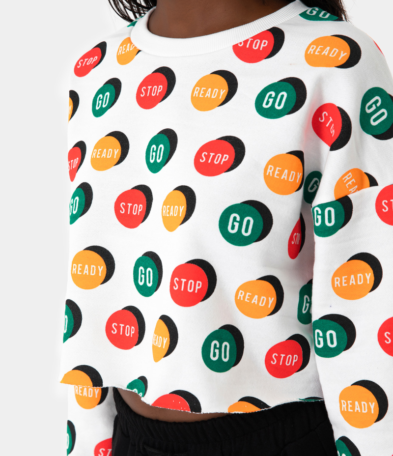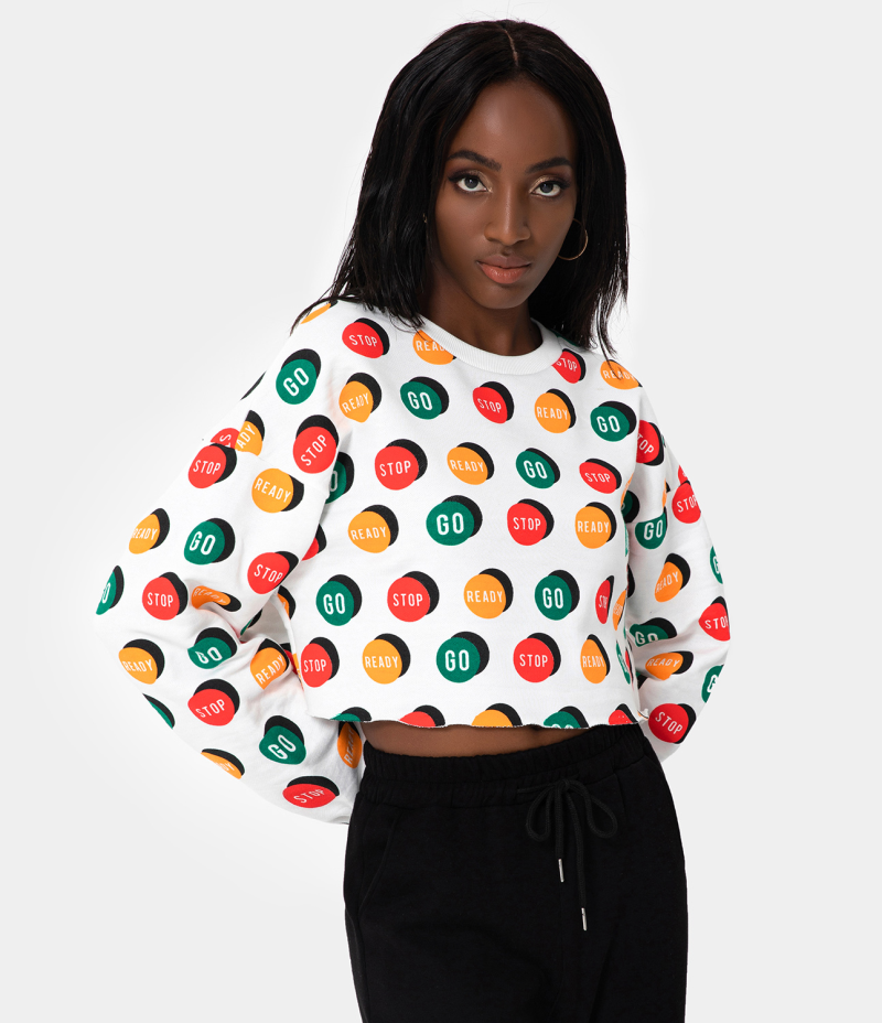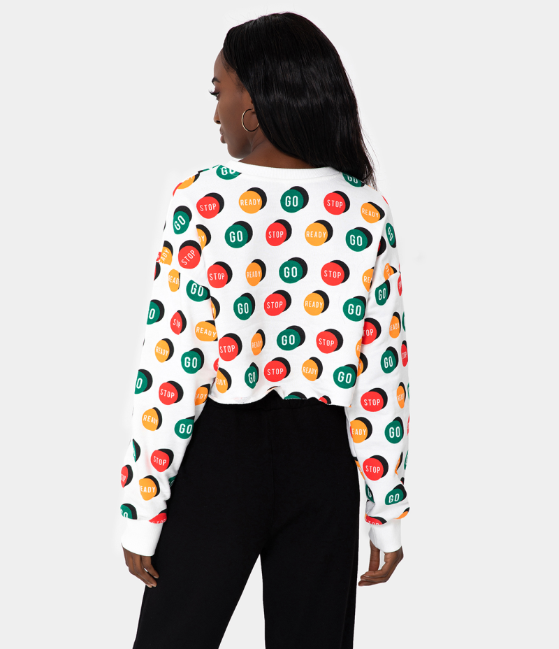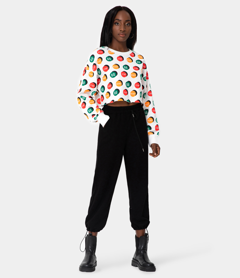 :: Halara Dropped Shoulder Long Sleeve Polka Dot Letter Print Cropped Women's Tops White | PEYRGBW-59