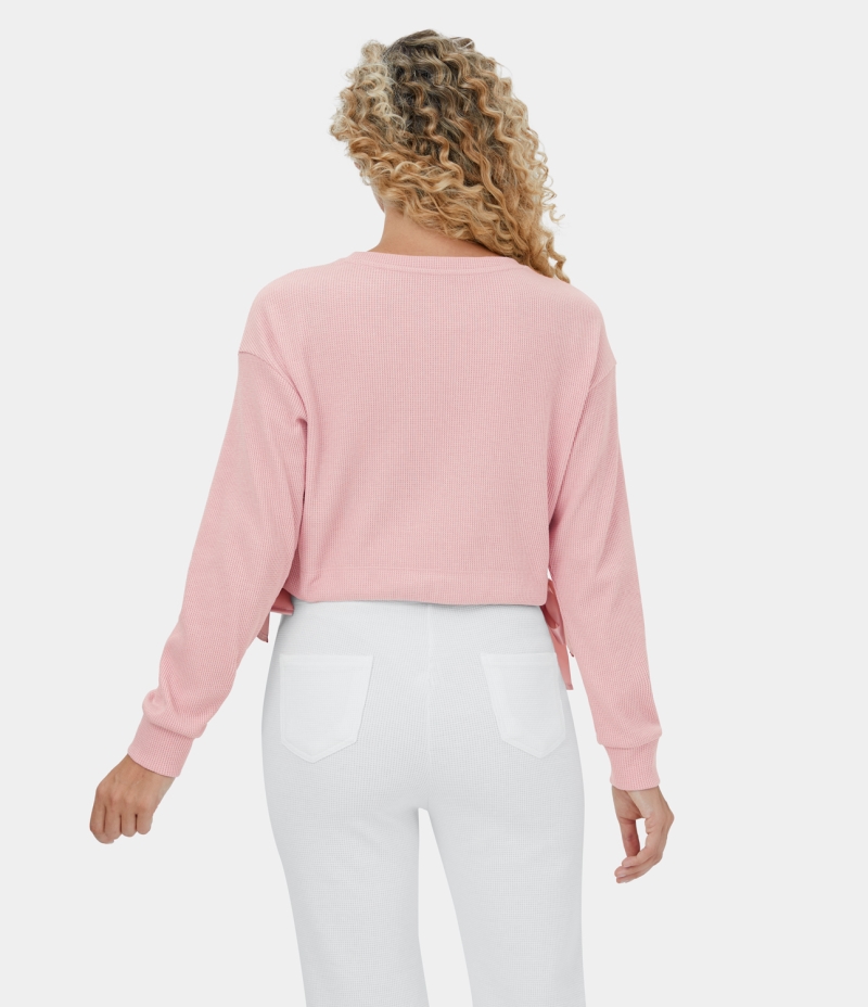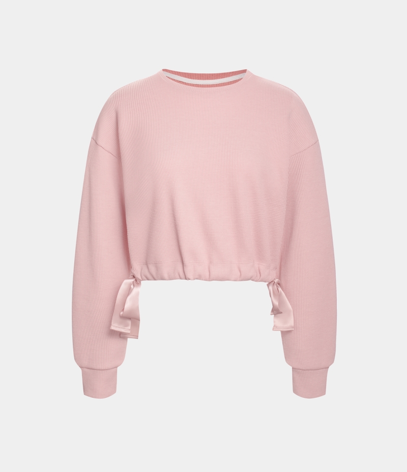 :: Halara Dropped Shoulder Side Ribbon Lace Up Cropped Casual Sweatshirt Women's Tops Peachskin | EVURNDI-96