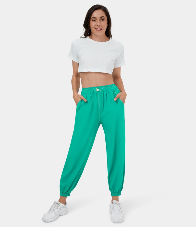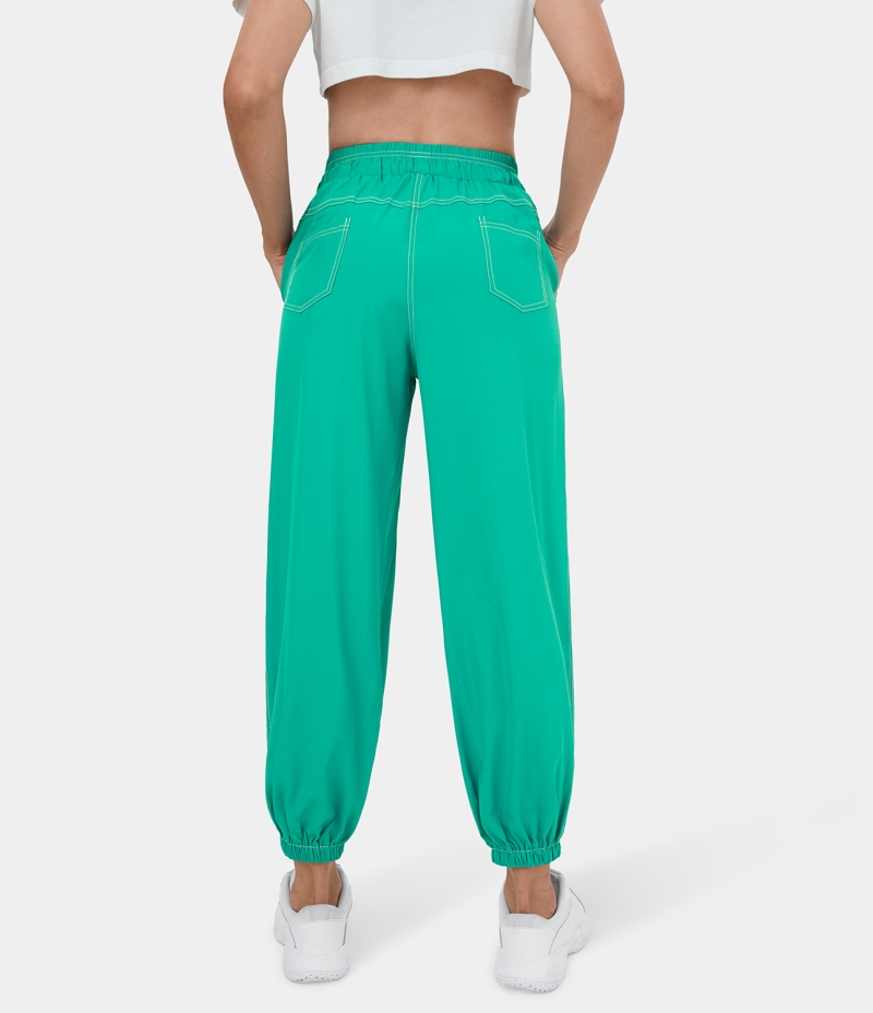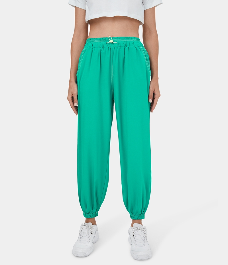 :: Halara Elastic Waistband Drawstring Pocket Contrast Trim Casual Women's Jogger Vivid Green | 267019-ARN