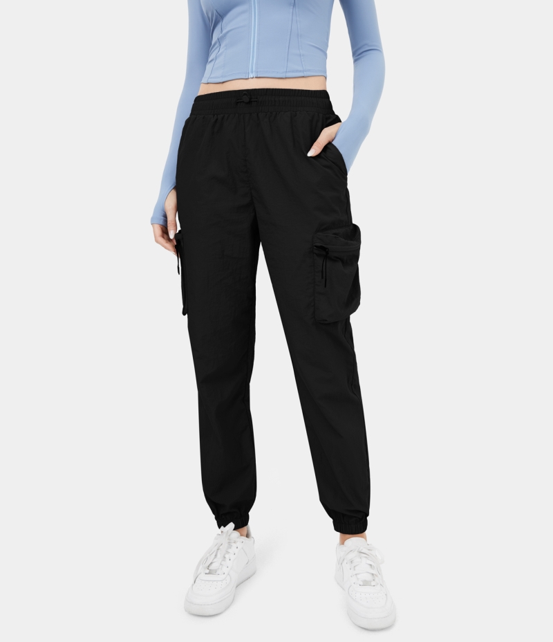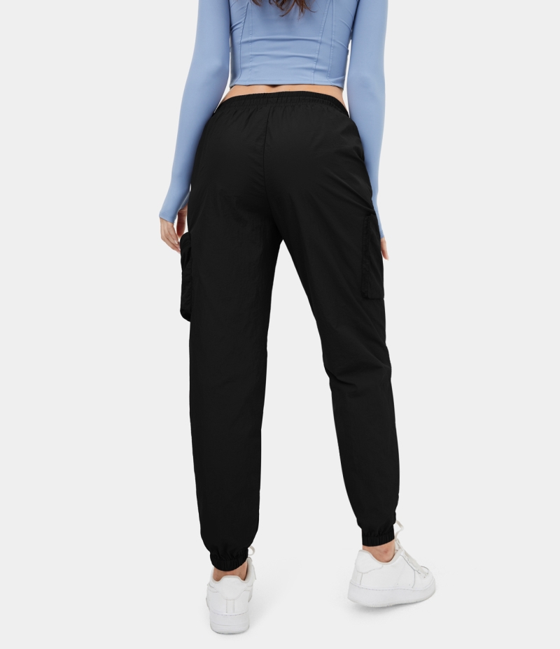 :: Halara Elastic Waistband Drawstring Pocket Packable Casual Cargo Women's Pants Black | 987310-AKP