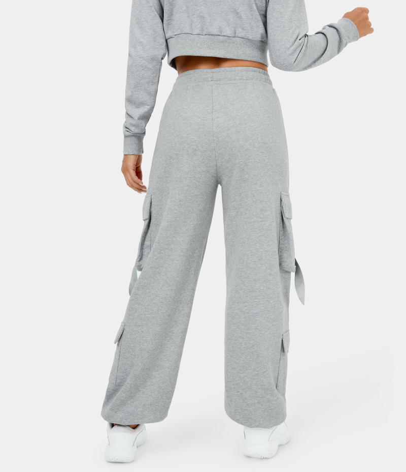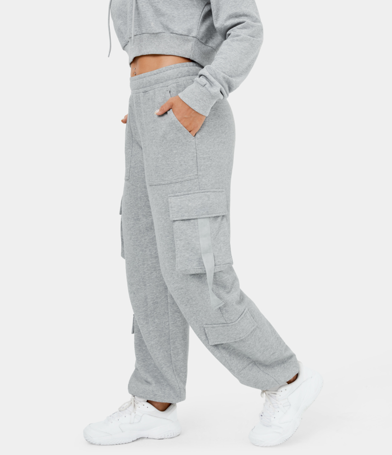 :: Halara Elastic Waistband Drawstring Side Flap Pocket Fleece Casual Cargo Women's Jogger Mottled Grey | 082951-HWD
