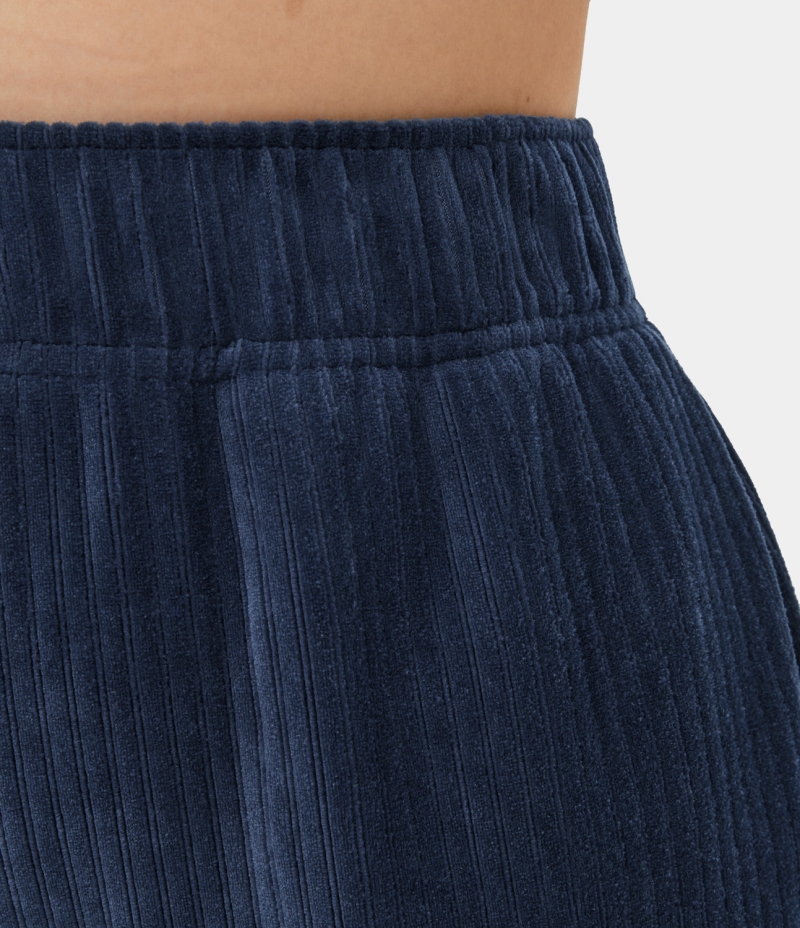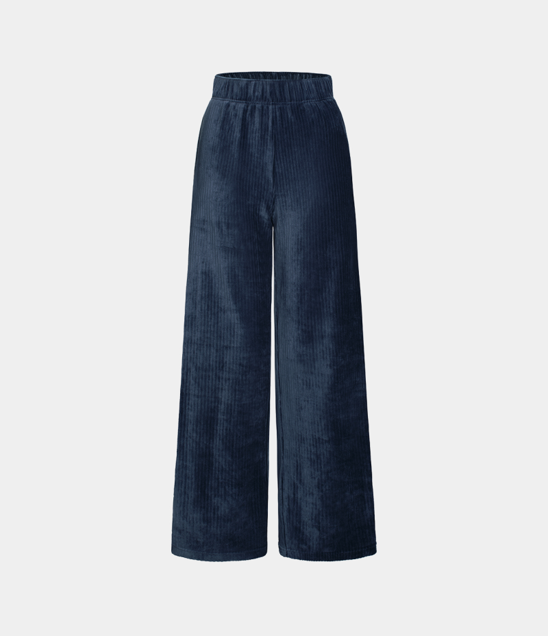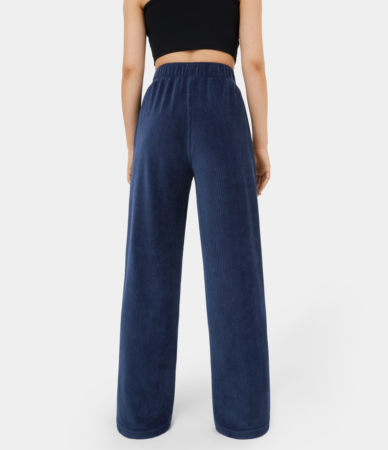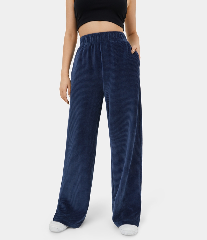 :: Halara Elastic Waistband Side Pocket Split Hem Wide Leg Casual Corduroy Women's Pants Dark Blue | 369485-LJY