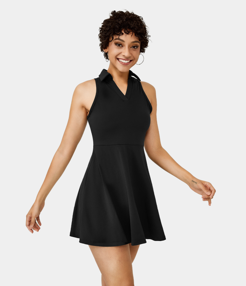:: Halara Everyday 2-in-1 Collared Sleeveless Mini Flare Activity Women's Dress Black | 283017-UZA