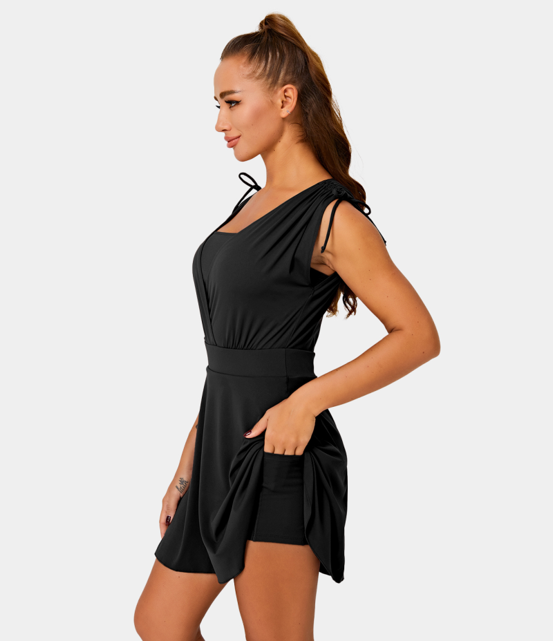 Halara Everyday 2-in-1 Drawstring Pocket Activity-With Separate Tube Women's Dress Black | 918536-WNR