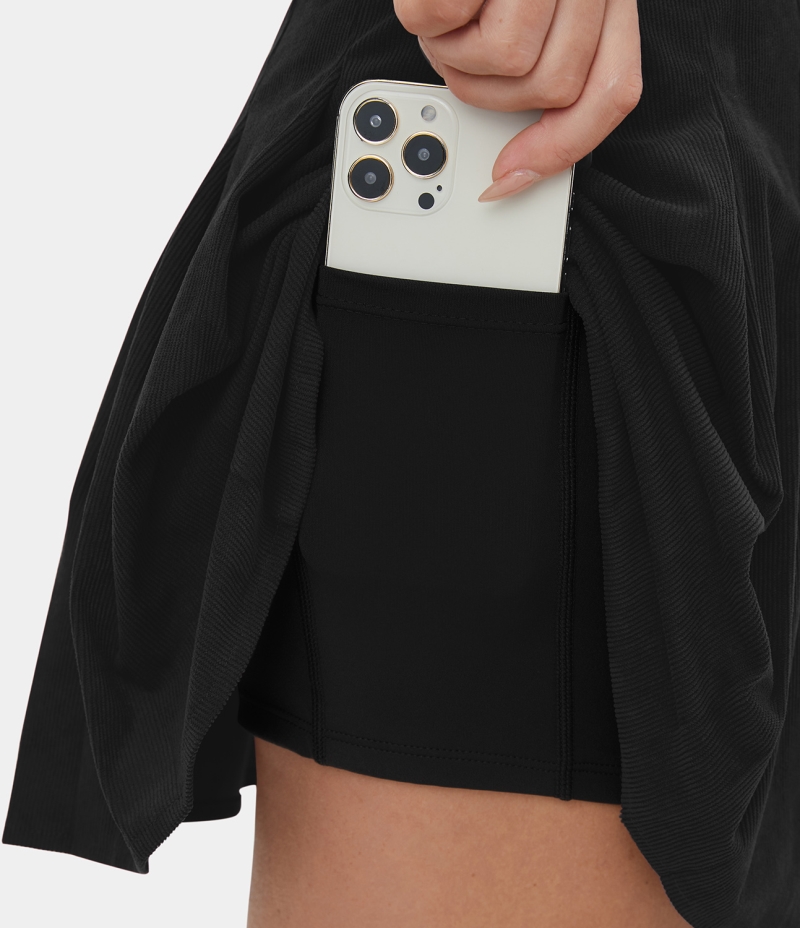 :: Halara Everyday 2-in-1 Side Pocket Pleated Corduroy-Airy Women's Skirts Black | 308254-XKV