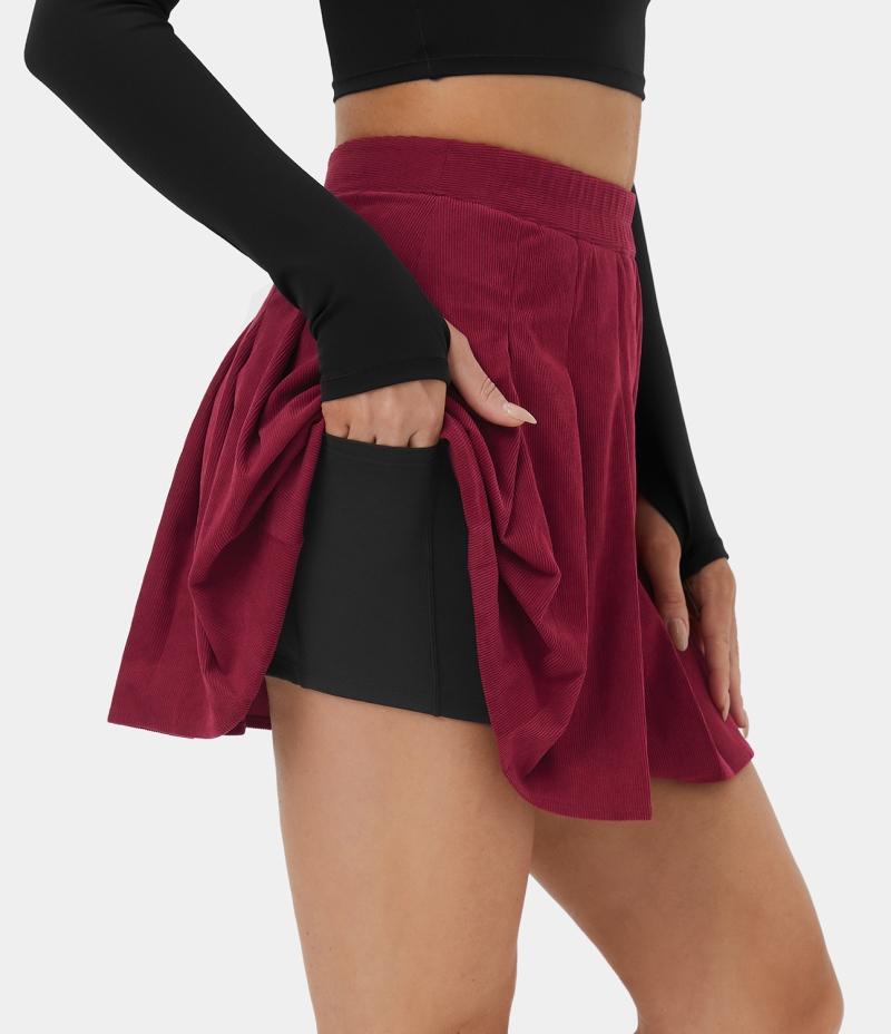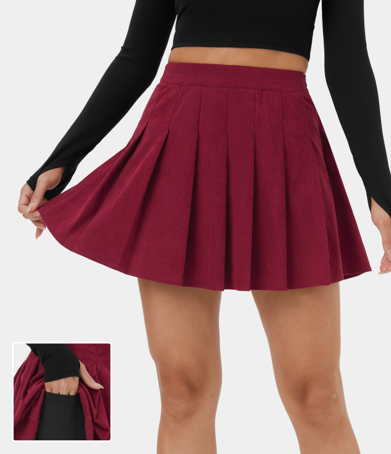 :: Halara Everyday 2-in-1 Side Pocket Pleated Corduroy-Airy Women's Skirts Rhubarb | 503428-XQK