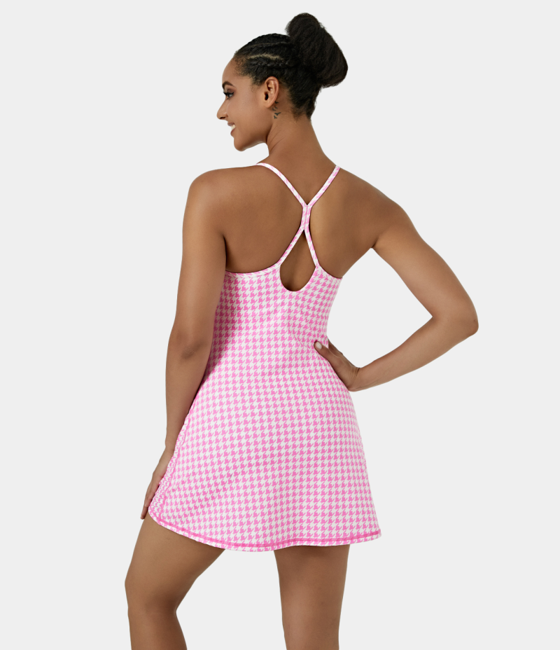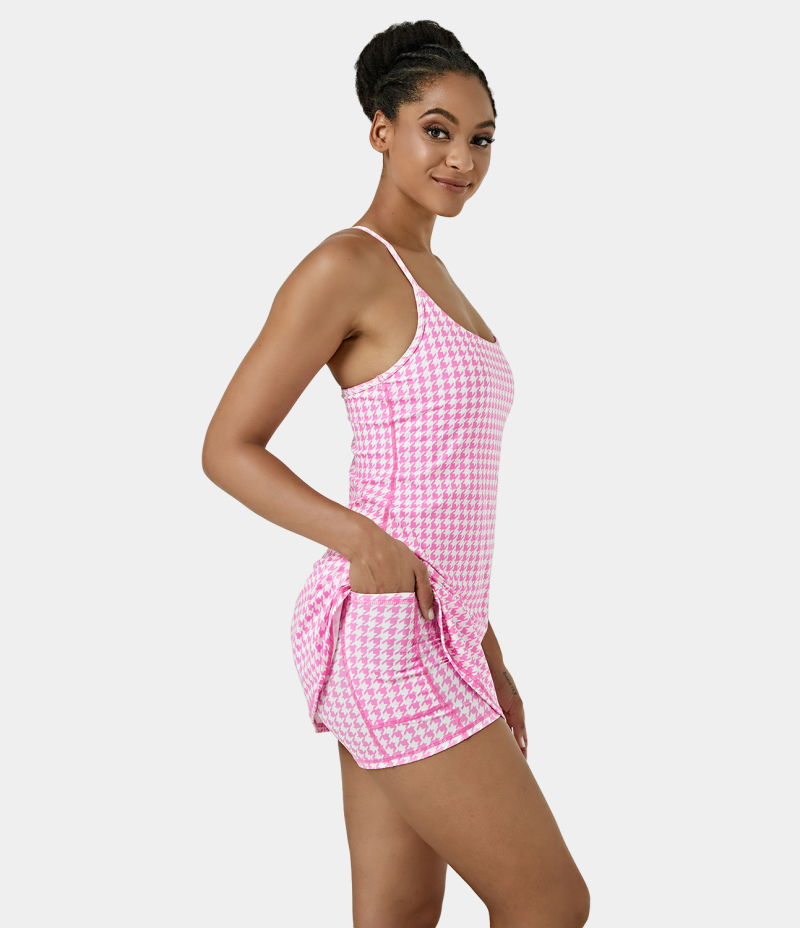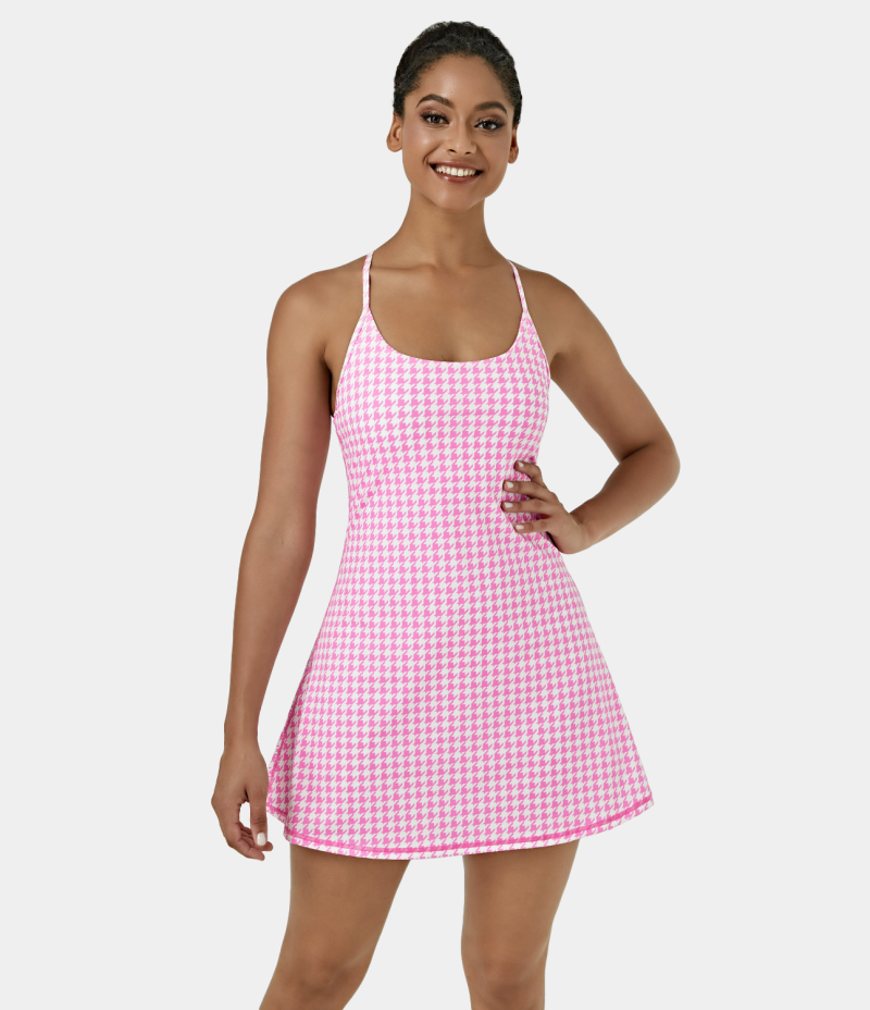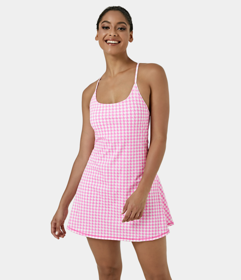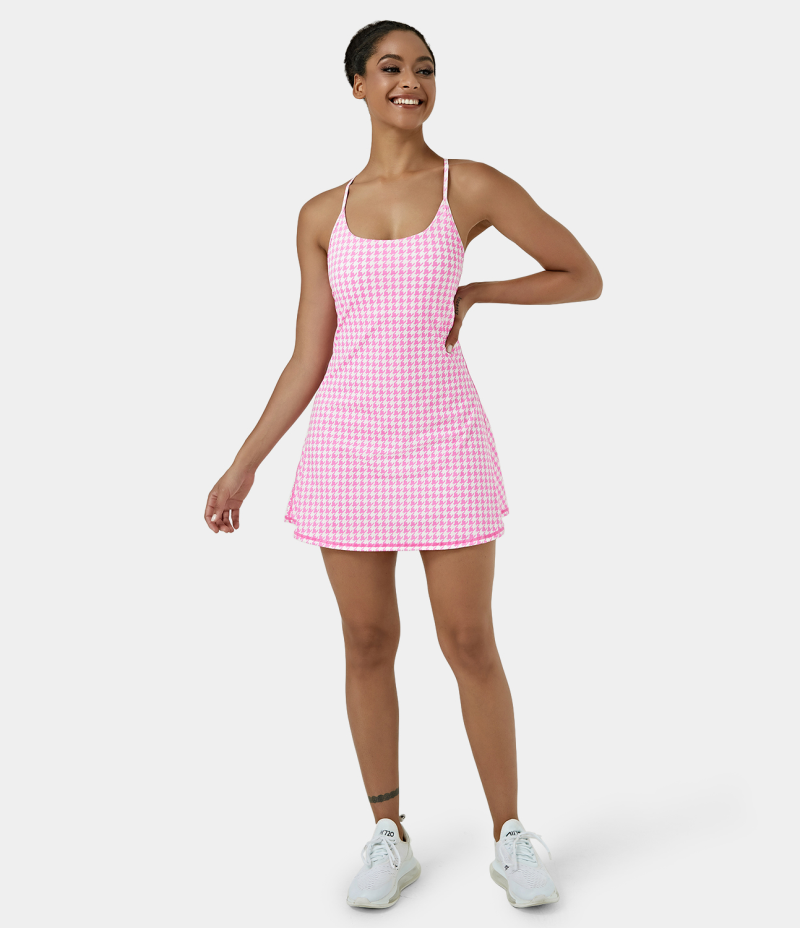:: Halara Everyday Backless 2-in-1 Activity-Euphoria Air Women's Dress Raspberry Houndstooth | 729518-VIJ
