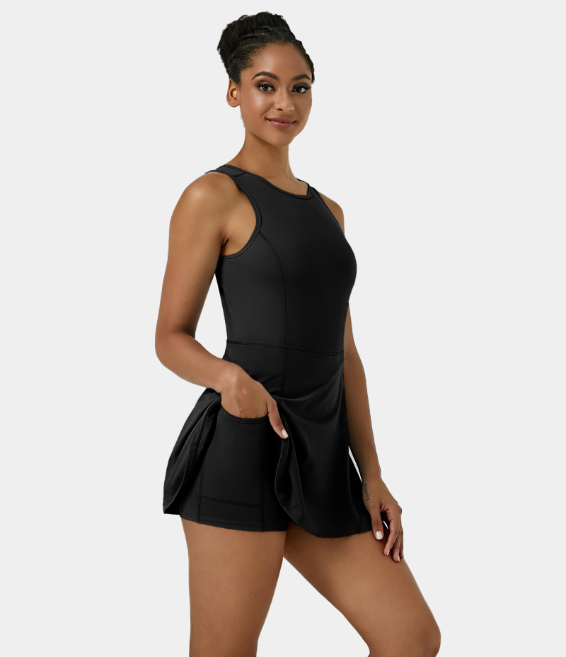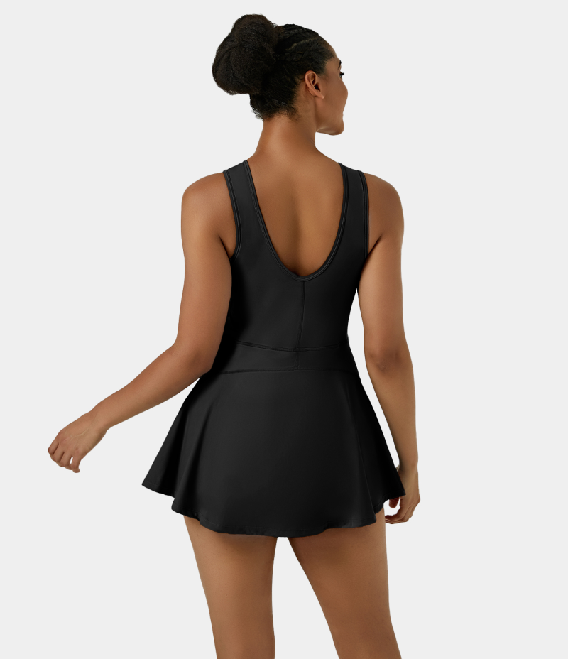 Halara Everyday Backless Stretchy 2-in-1 Flare Golf-BFF Women's Dress Black | 439765-LQT