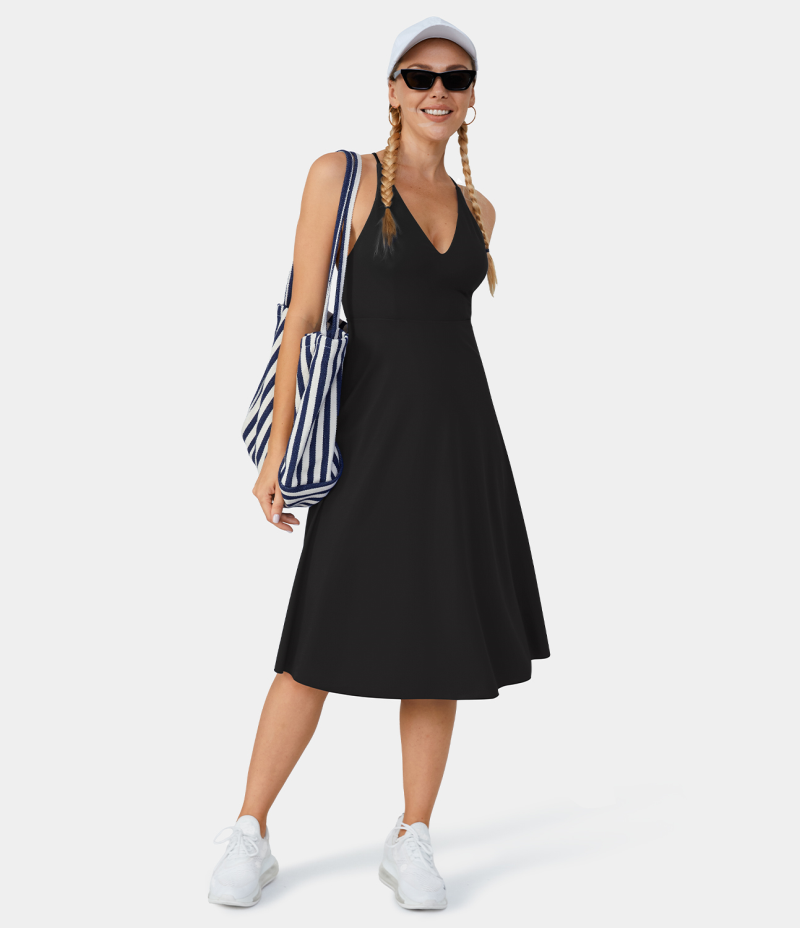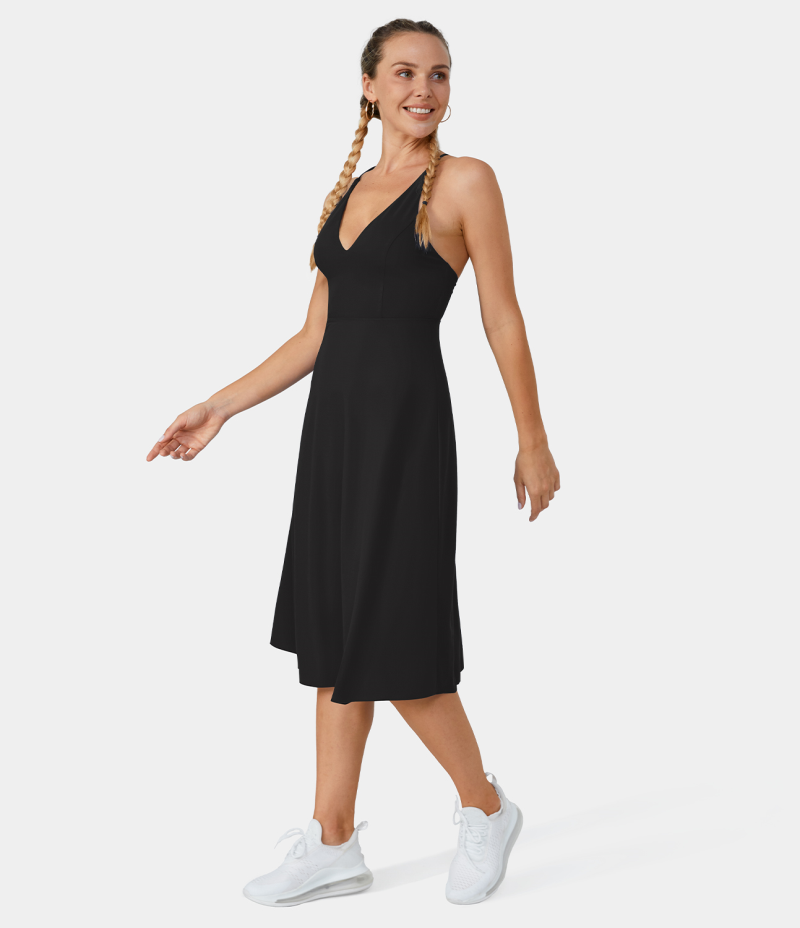 Halara Everyday Crisscross Backless Lace Up Flare Midi Women's Dress Black | 602537-PSI