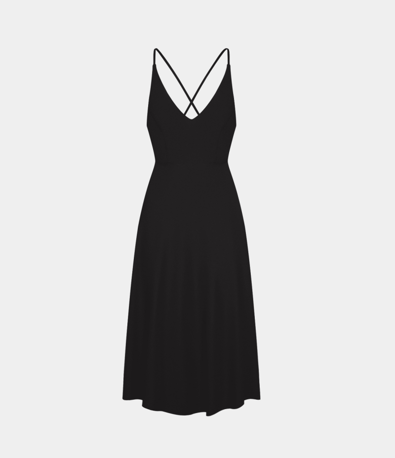 :: Halara Everyday Crisscross Backless Lace Up Flare Midi Women's Dress Black | 602537-PSI