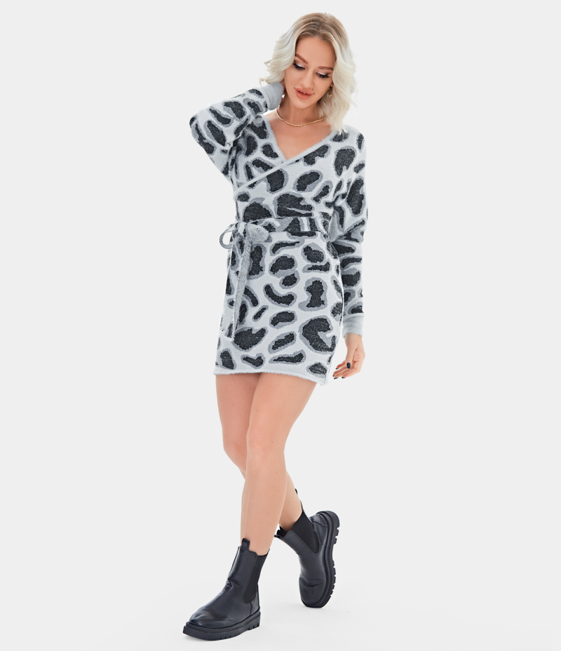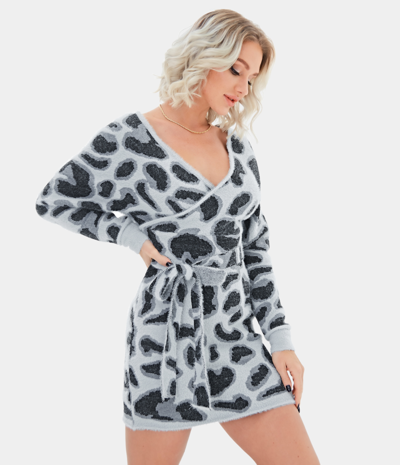 :: Halara Everyday Deep V Neck Lace Up Mini Knitted Women's Tops Panthera Uncia | URTOKIL-86