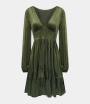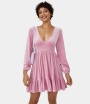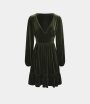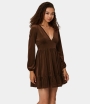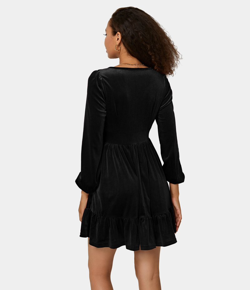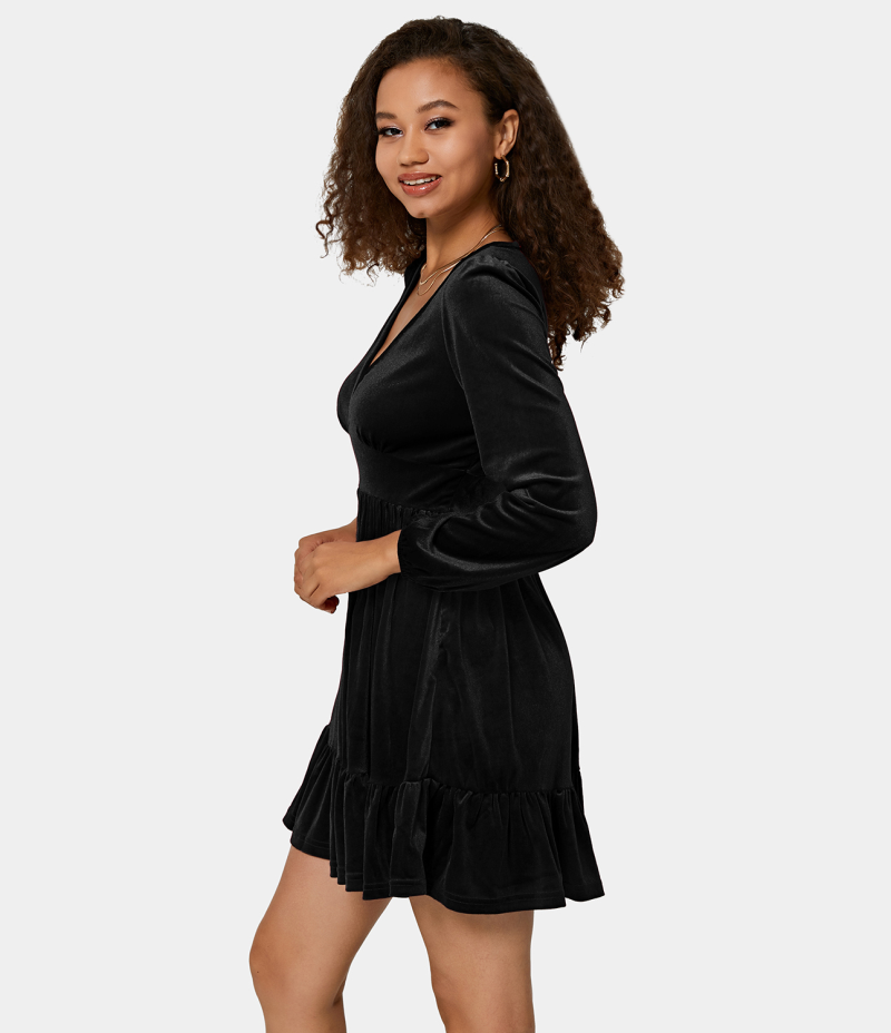 :: Halara Everyday Deep V Neck Ruffled Hem Velvet Mini Chill Women's Dress Black | 068519-EIY