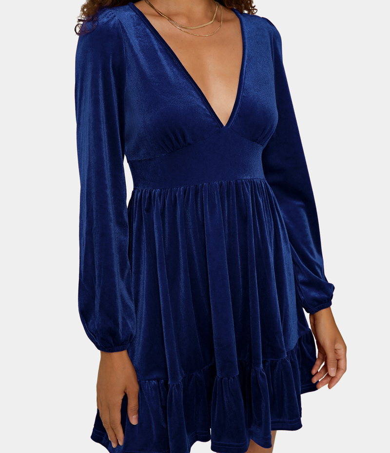 :: Halara Everyday Deep V Neck Ruffled Hem Velvet Mini Chill Women's Dress Lilac Sachet | 319856-DUV