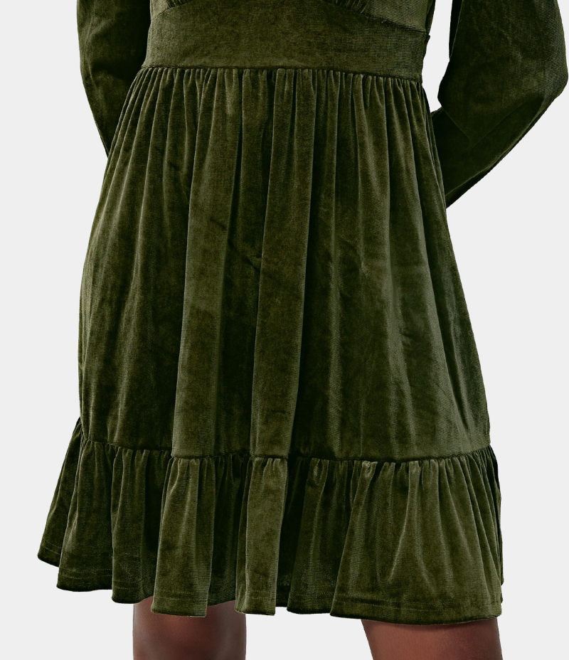 :: Halara Everyday Deep V Neck Ruffled Hem Velvet Mini Chill Women's Dress Rifle Green | 071865-QDF