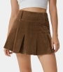 :: Halara Everyday High Waisted 2-in-1 Corduroy A Line Pleated Women's Skirts Brown | 143690-DAY