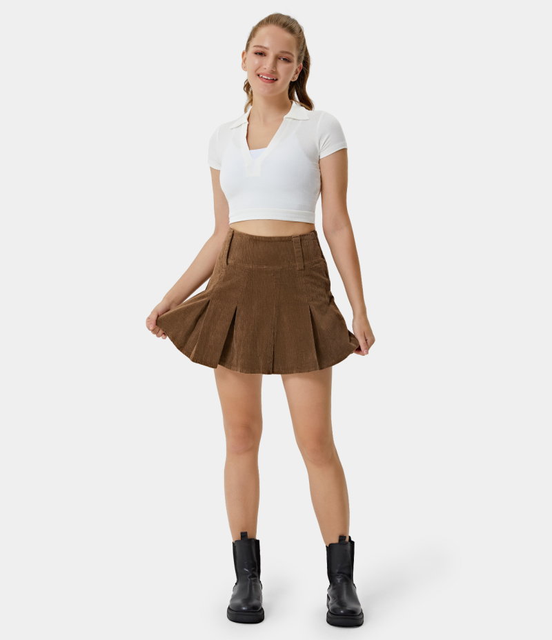 :: Halara Everyday High Waisted 2-in-1 Corduroy A Line Pleated Women's Skirts Brown | 387621-VRS